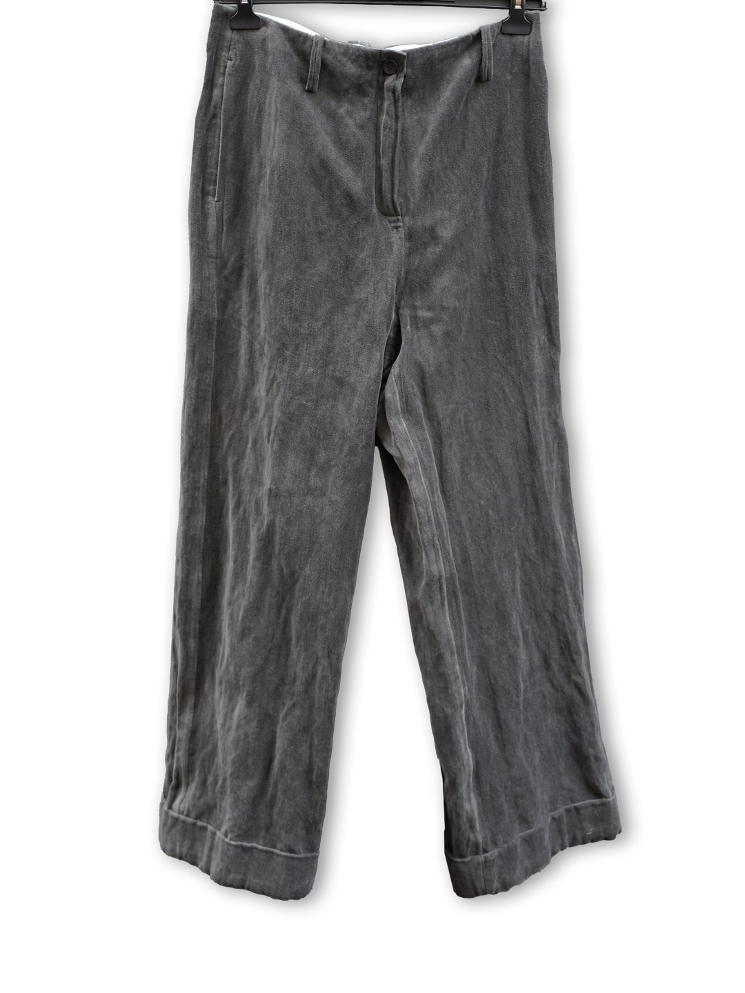 Pelēkas, platas samta bikses. 92% kokvilna, 8% metāls.