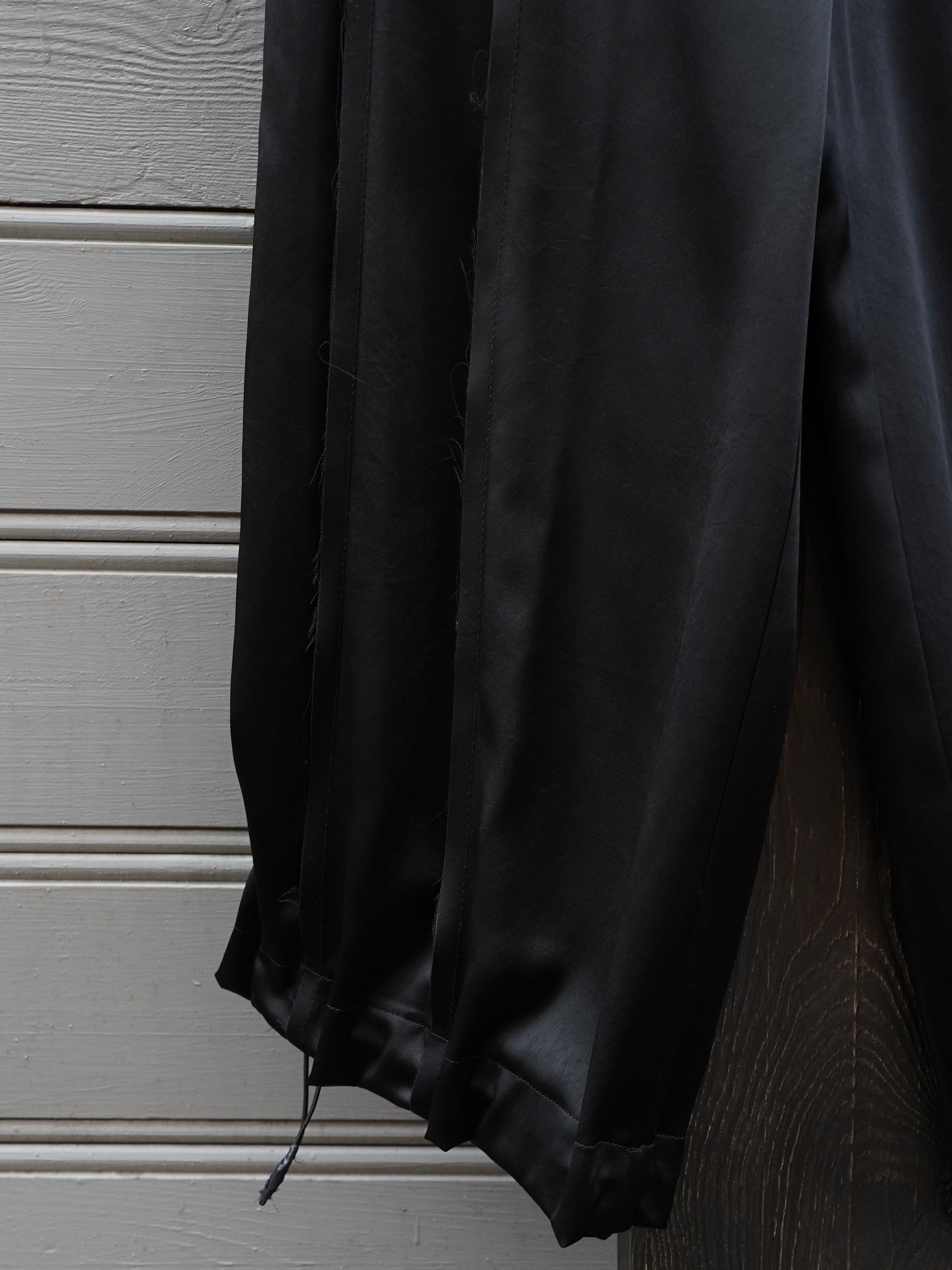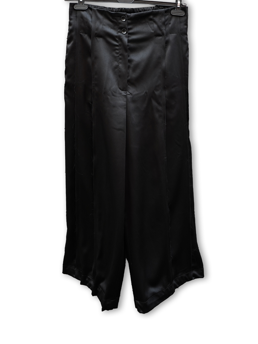 Melnas bikses ar savelkamiem galiem. 89% triacetāts, 11% poliesters;