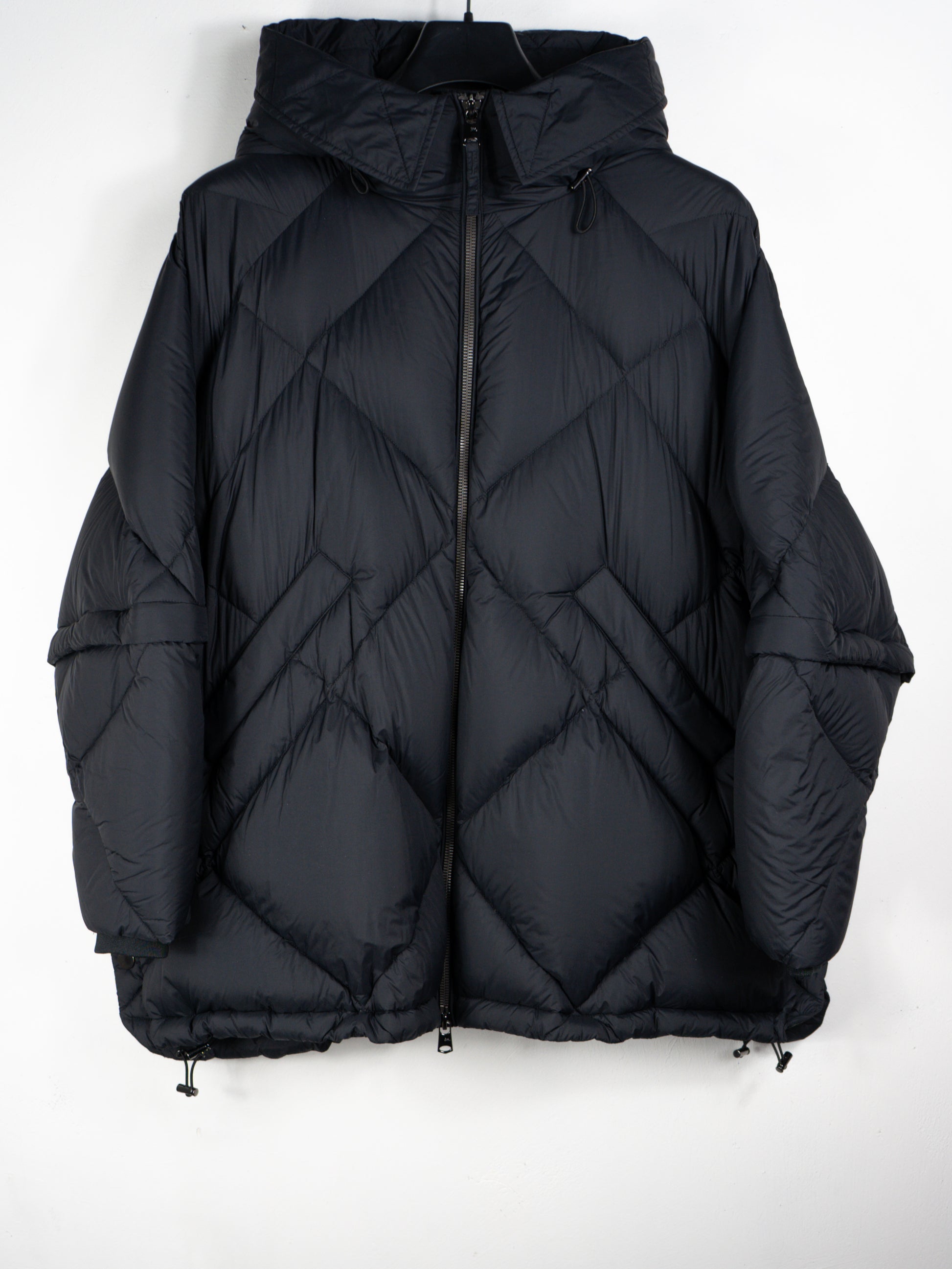 Divi vienā - jaka un pončo. Noņemamas piedurknes ar spiedpogām, kā arī sanos spiedpogas. Dūnu pildījums: 90% dūnas. 10% spalvas.