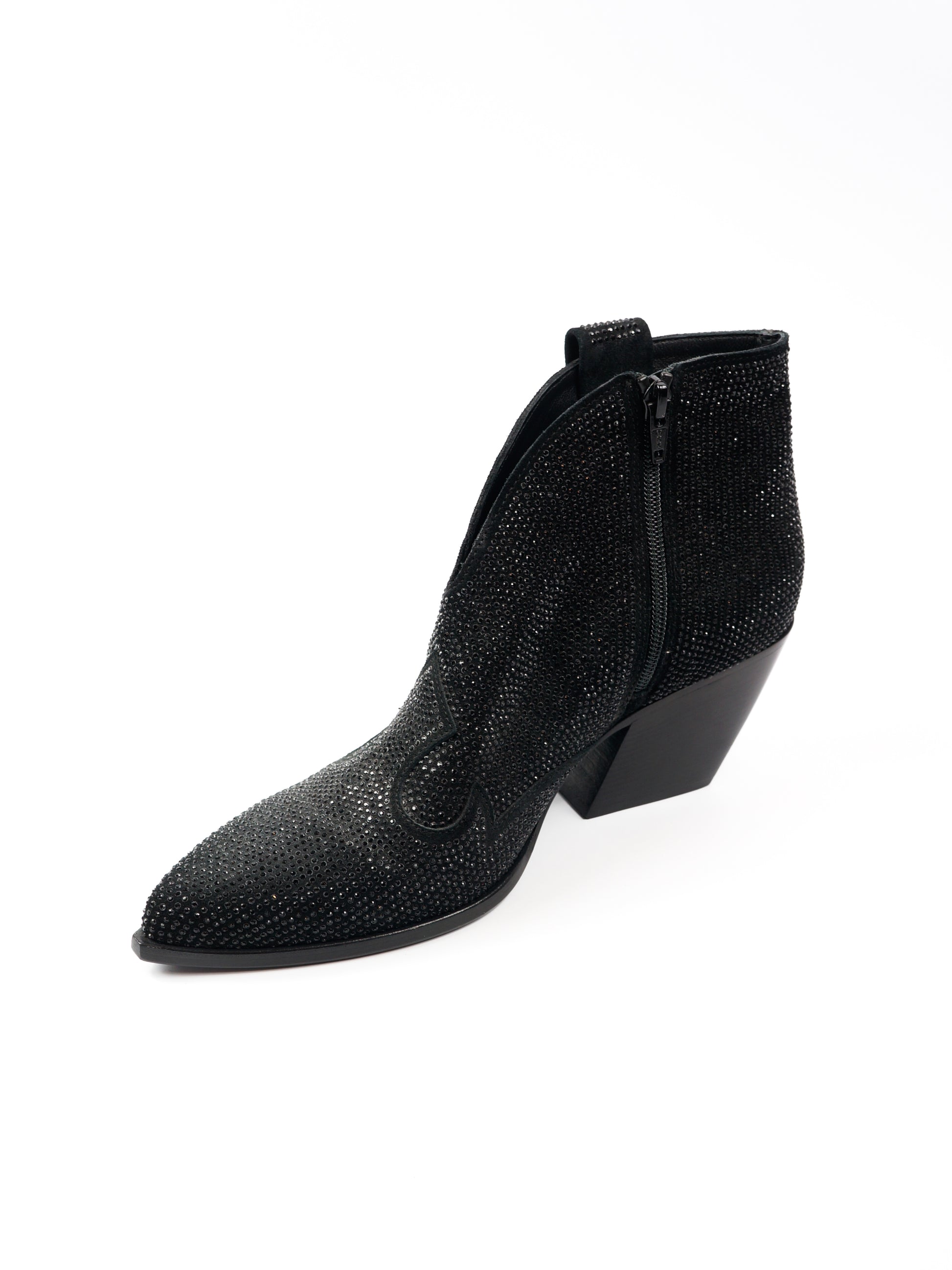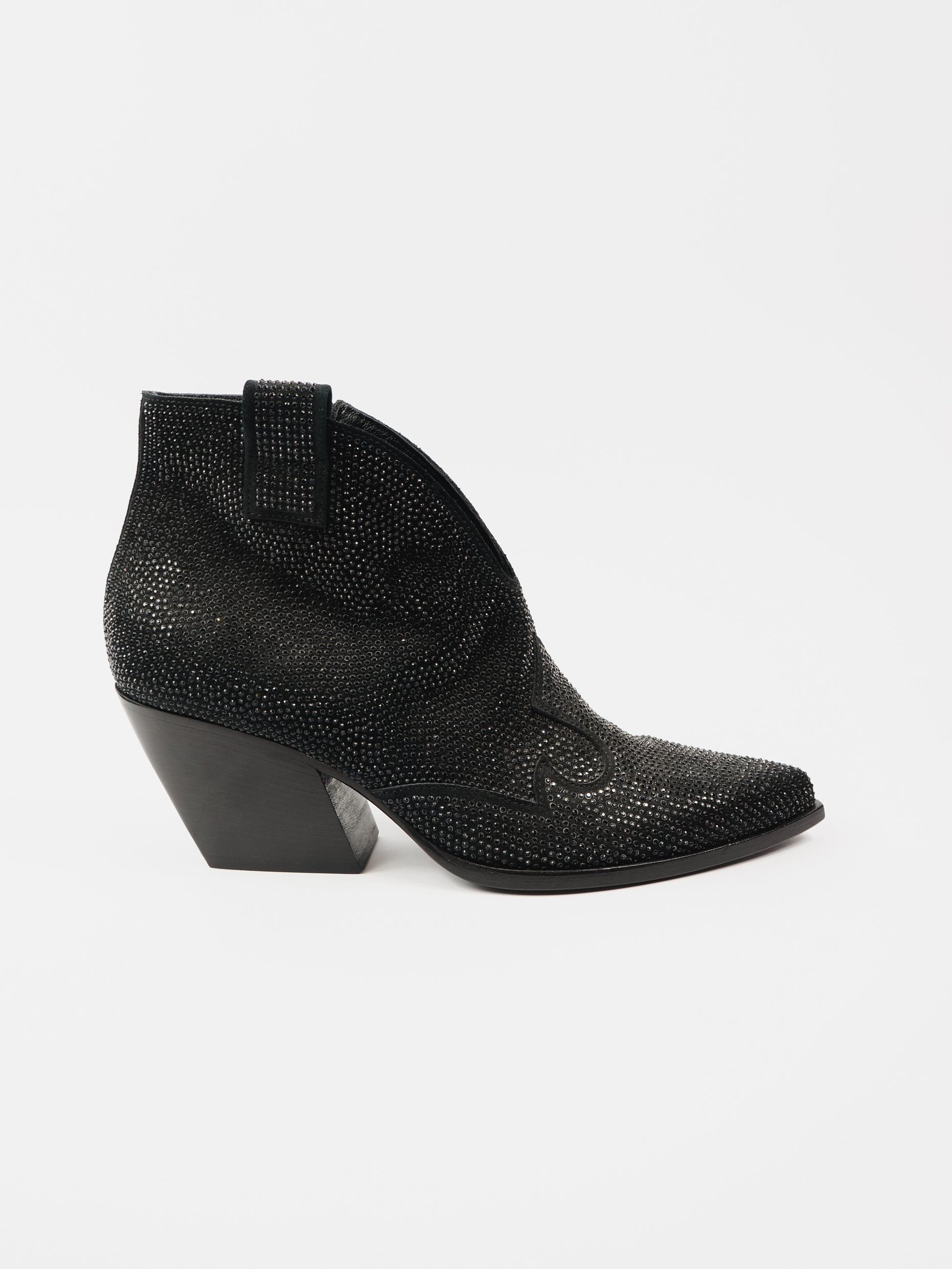 Kovbojtipa ādas zābaki ar mirdzumiem. Sānā rāvējs.