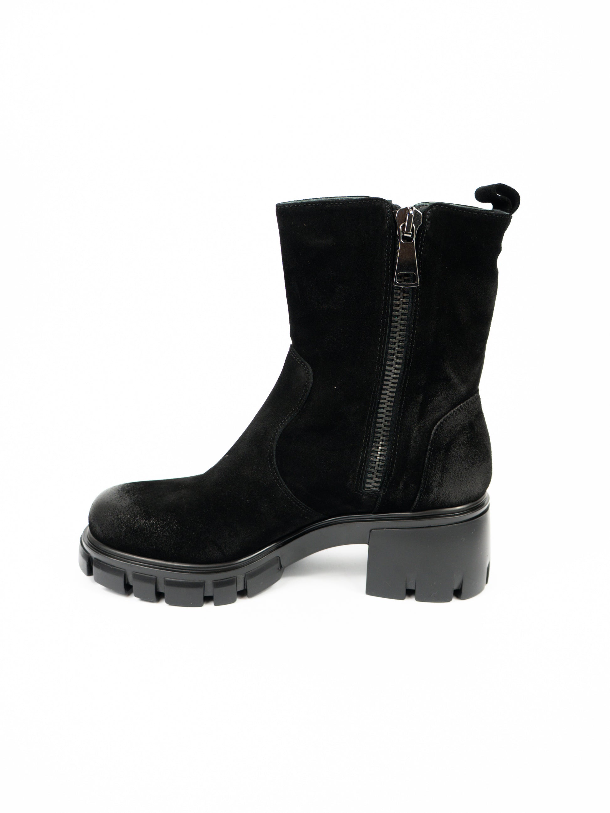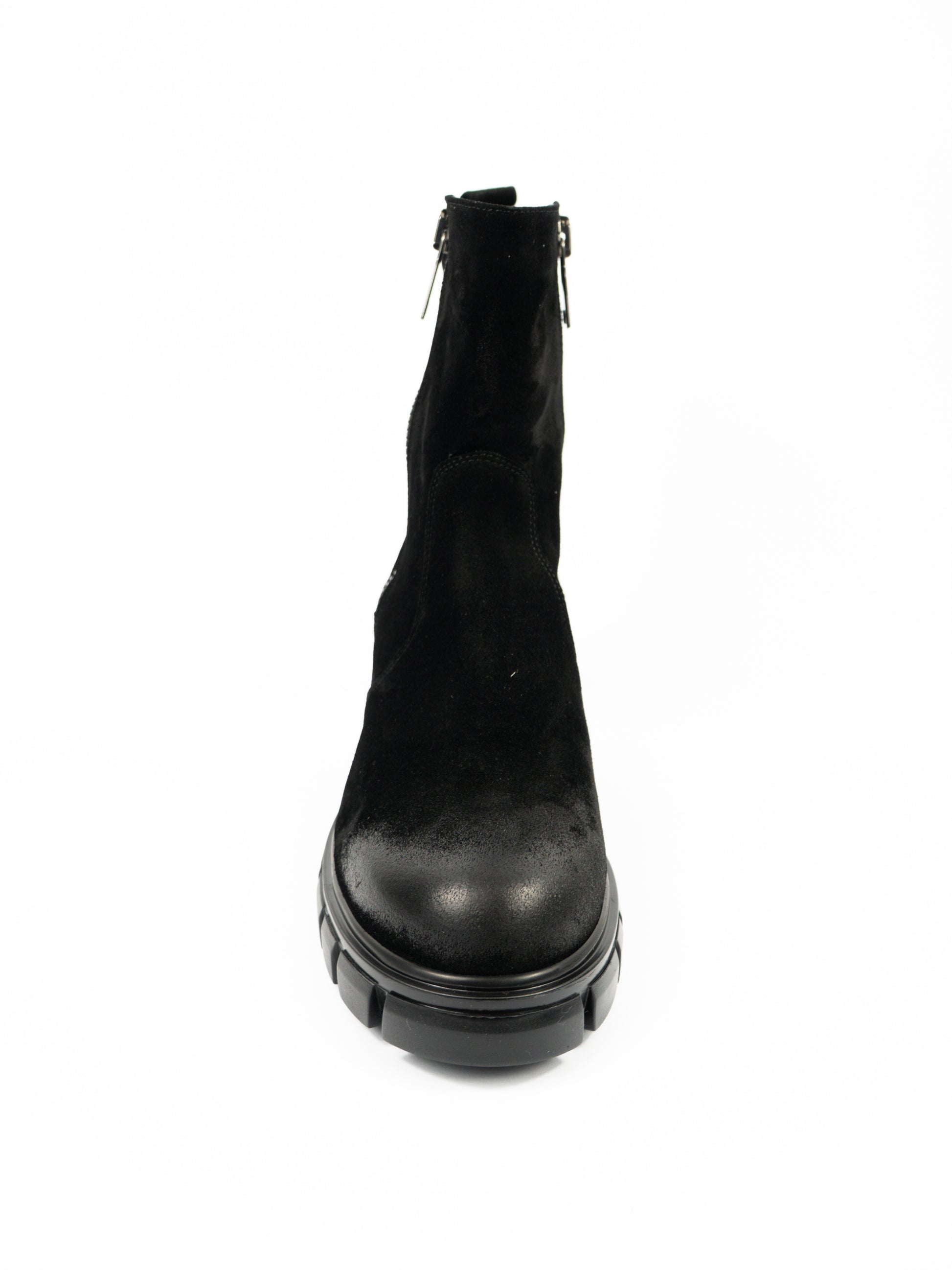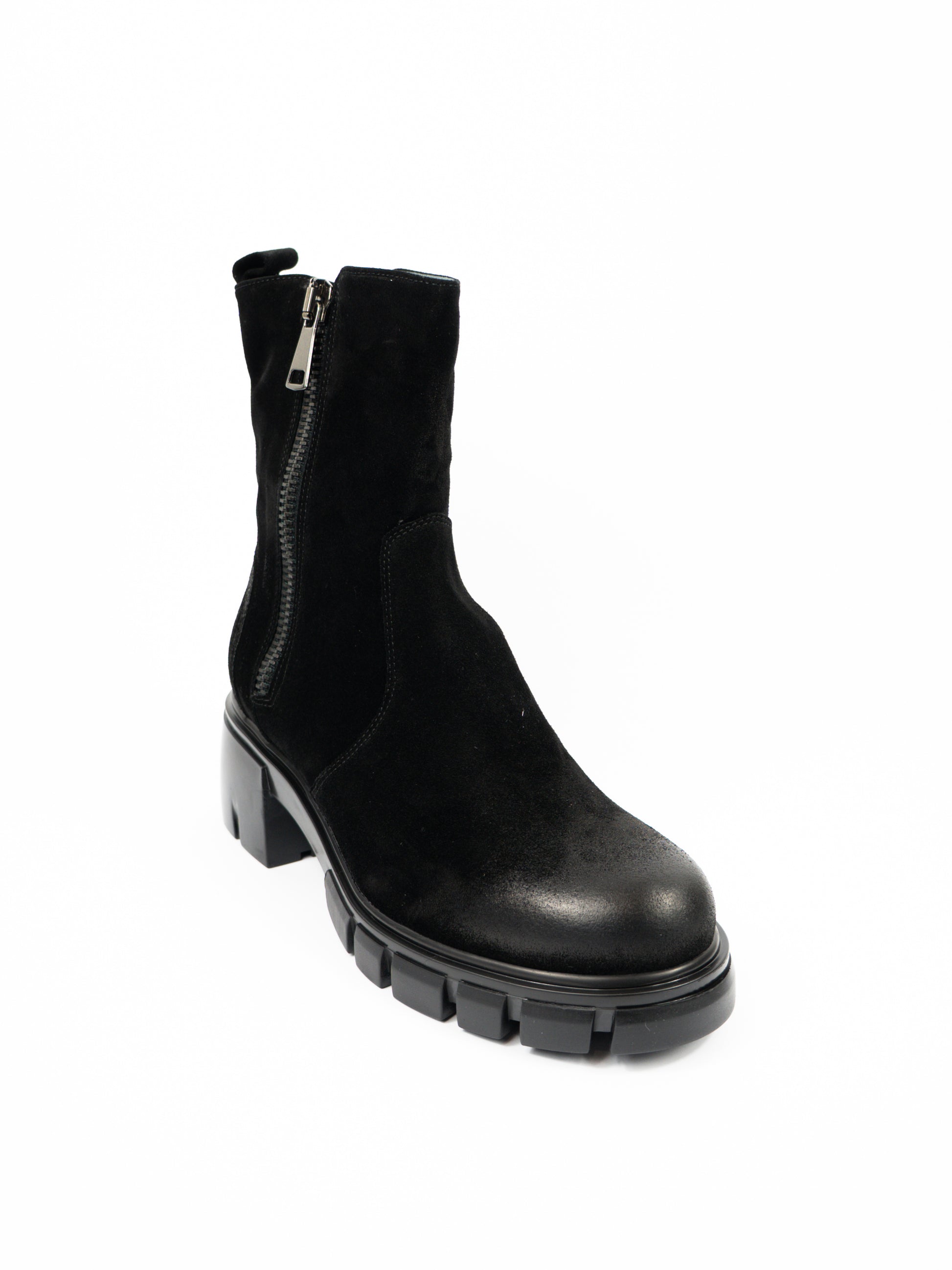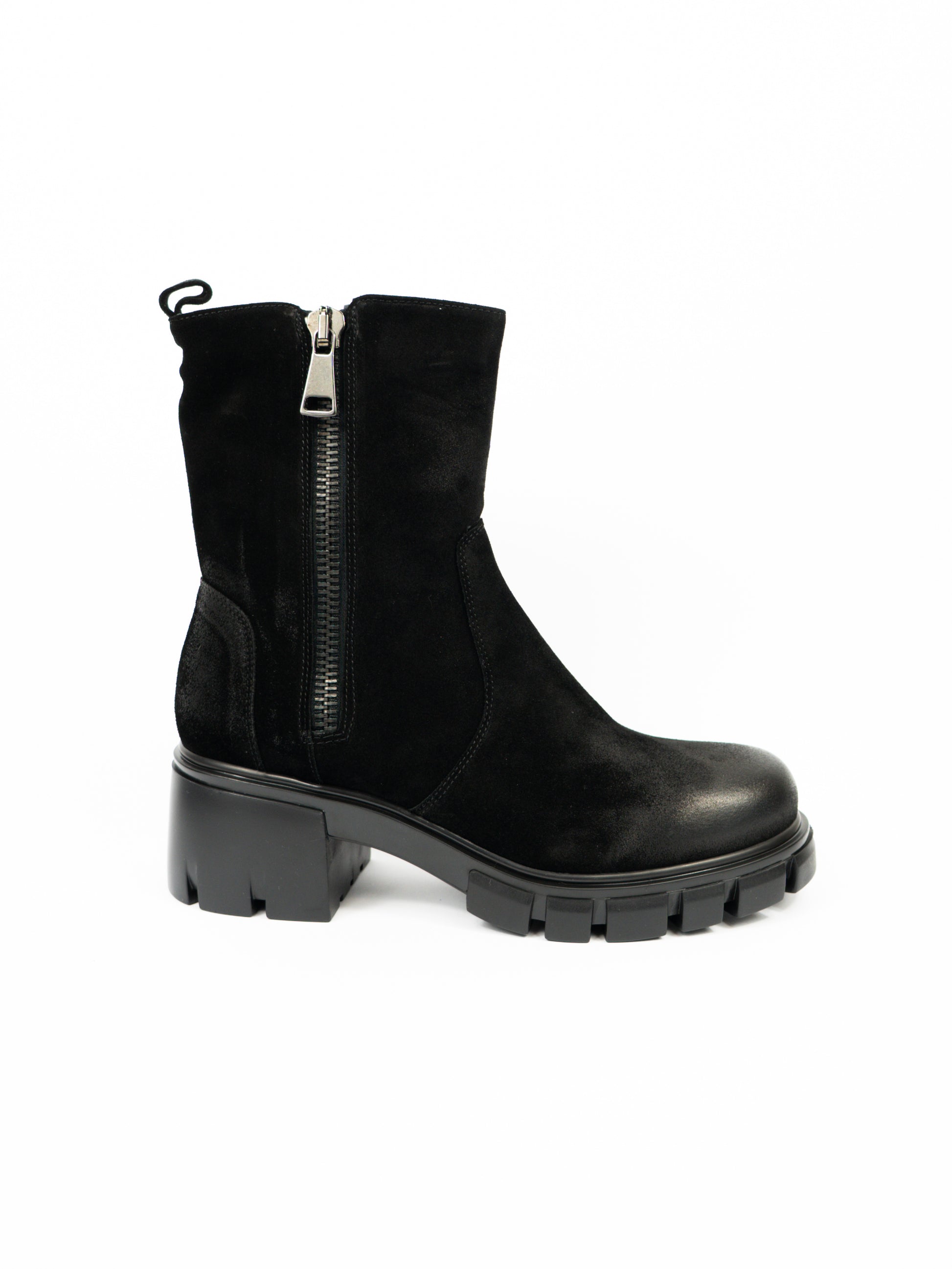 Melni zamšādas zābaki ar papēdi. Sānos rāvēji.