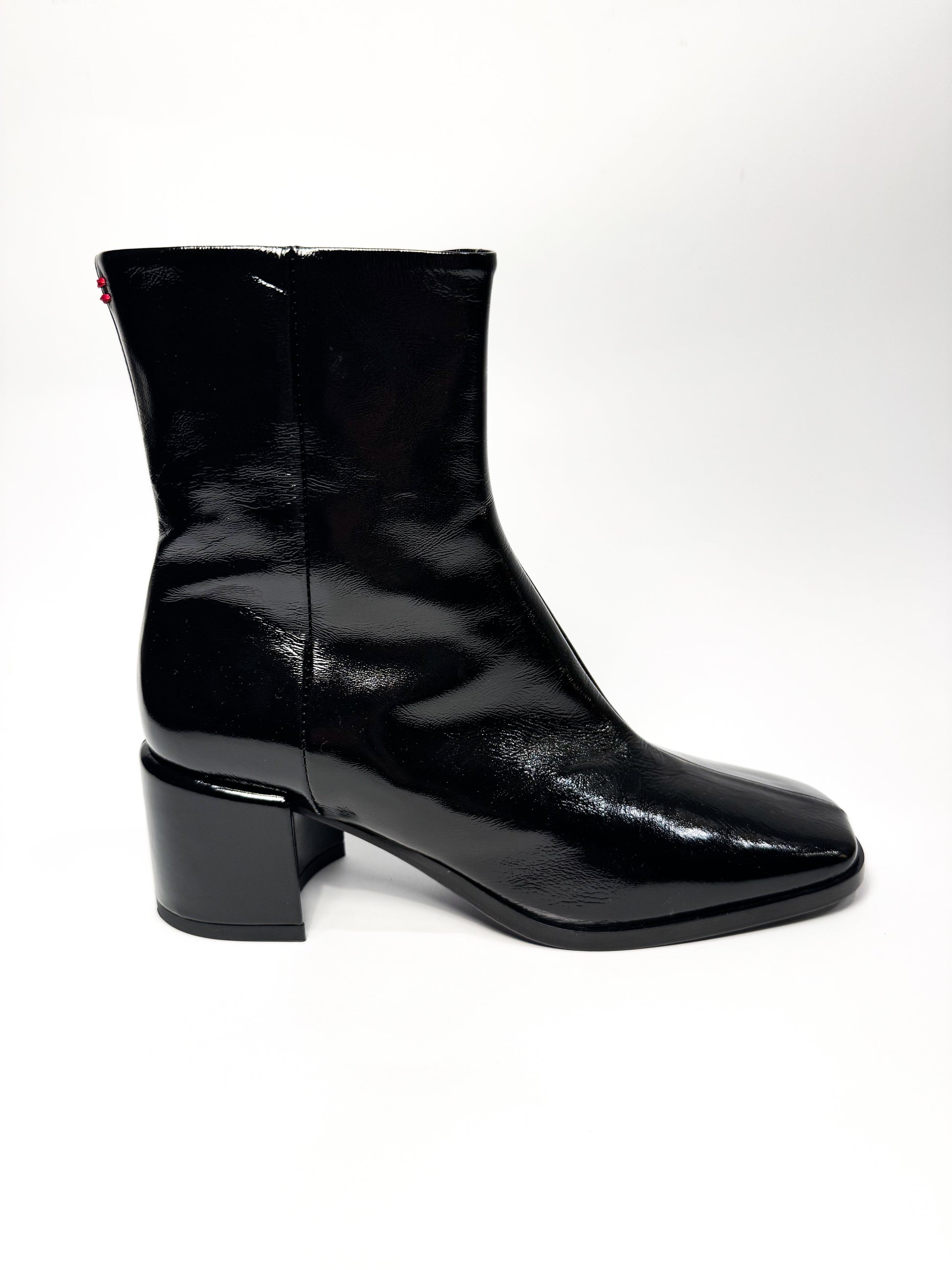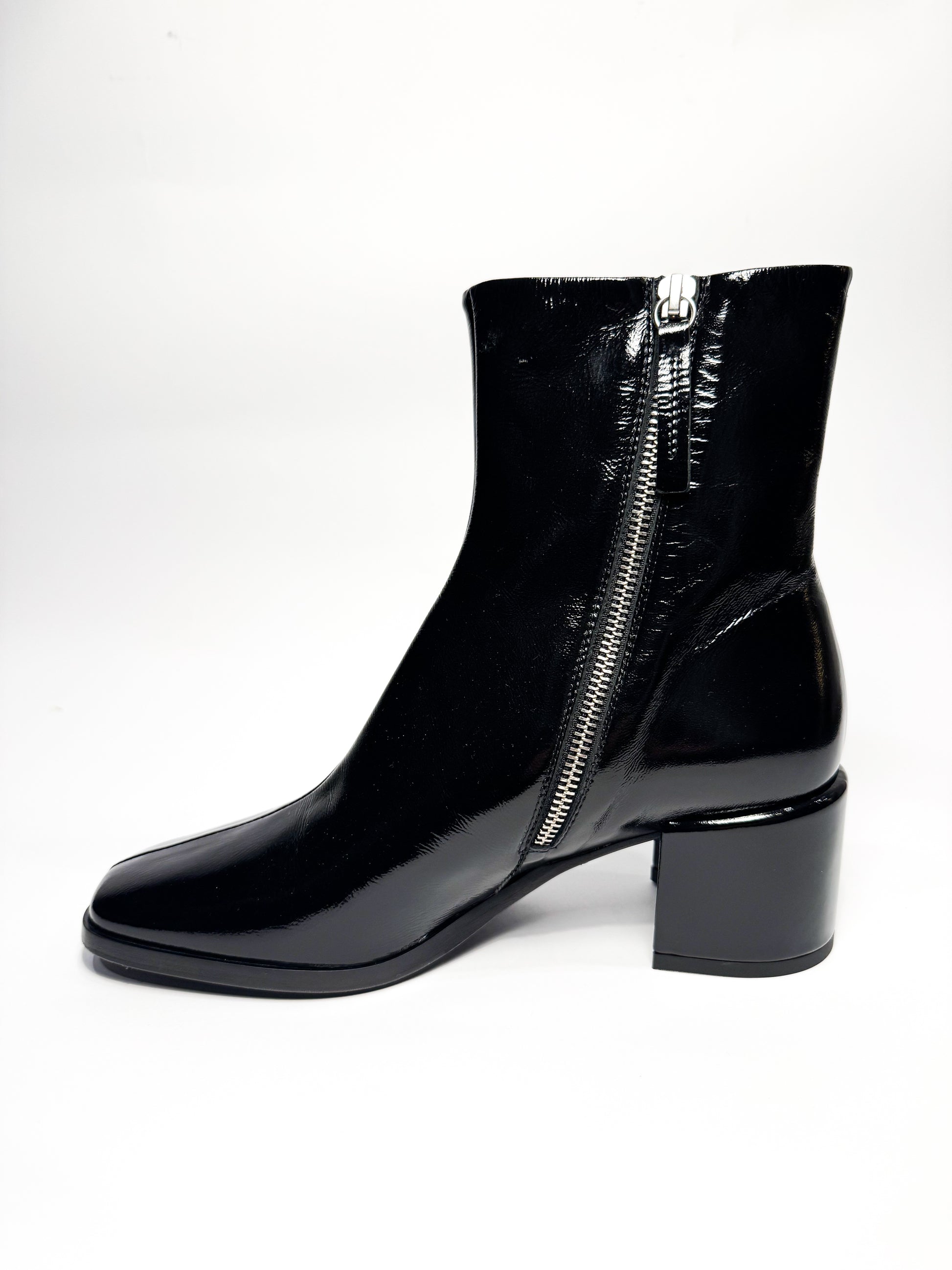 Melni lakādas zābaki ar rāvēju sānā. Āda ir mīksta. Ražots Itālijā.