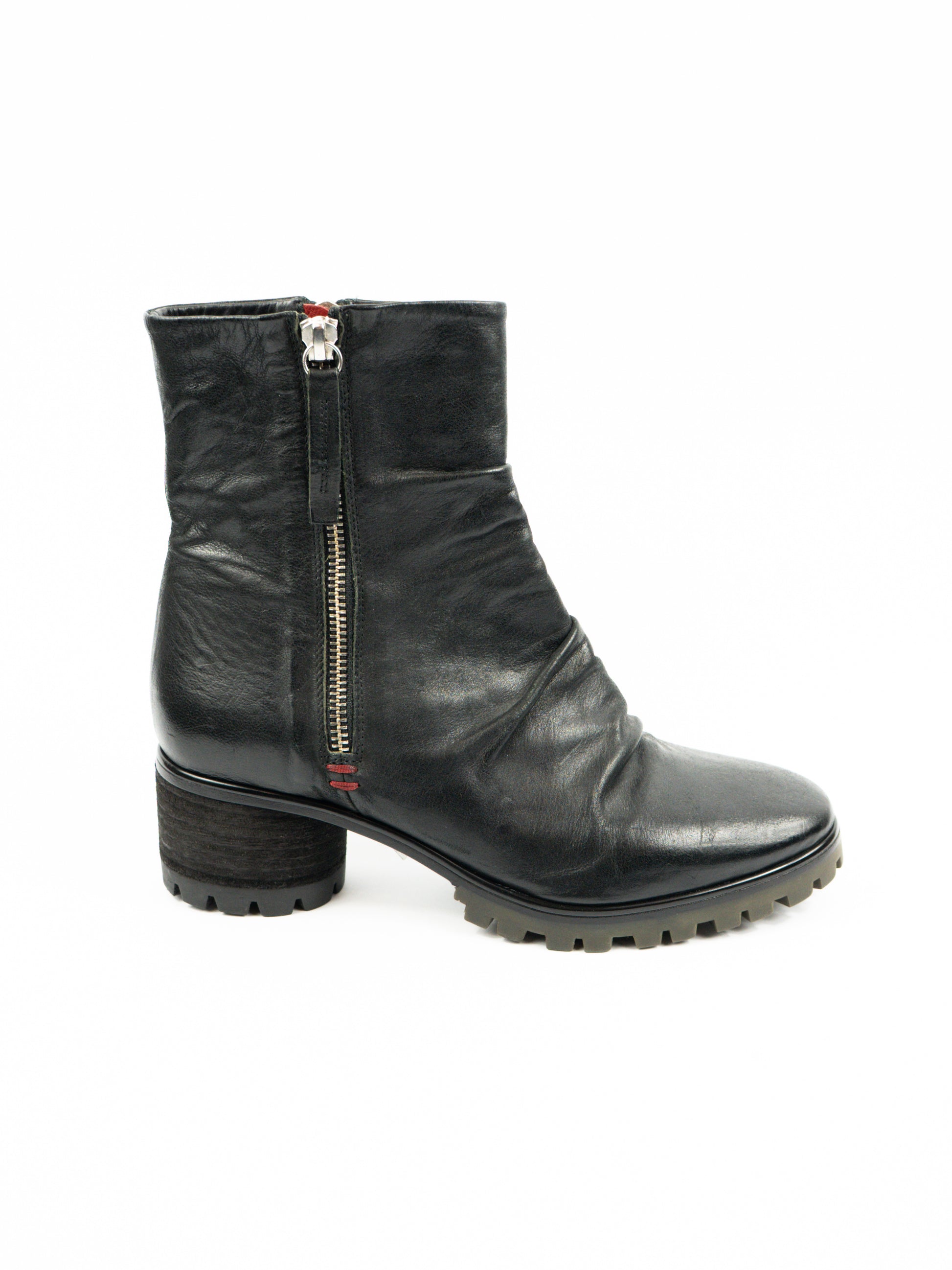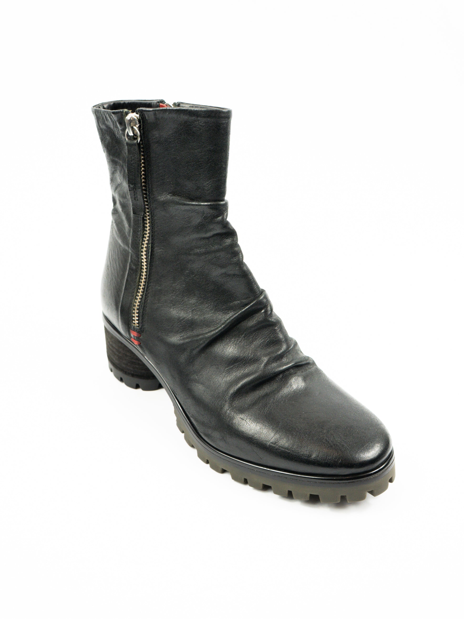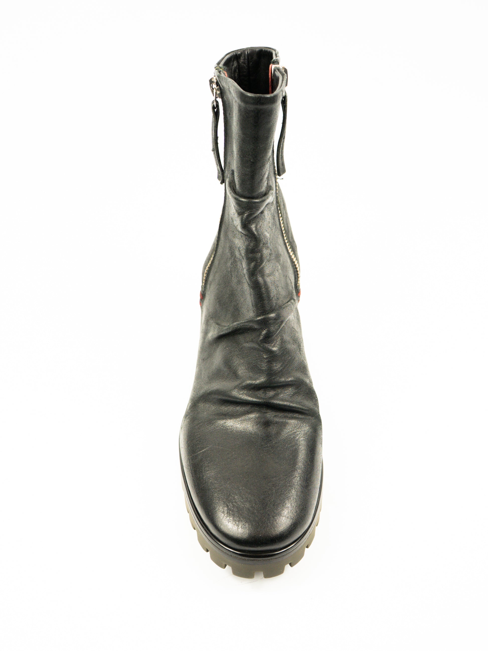 Melni ādas zābaki ar rāvēju abos sānos.