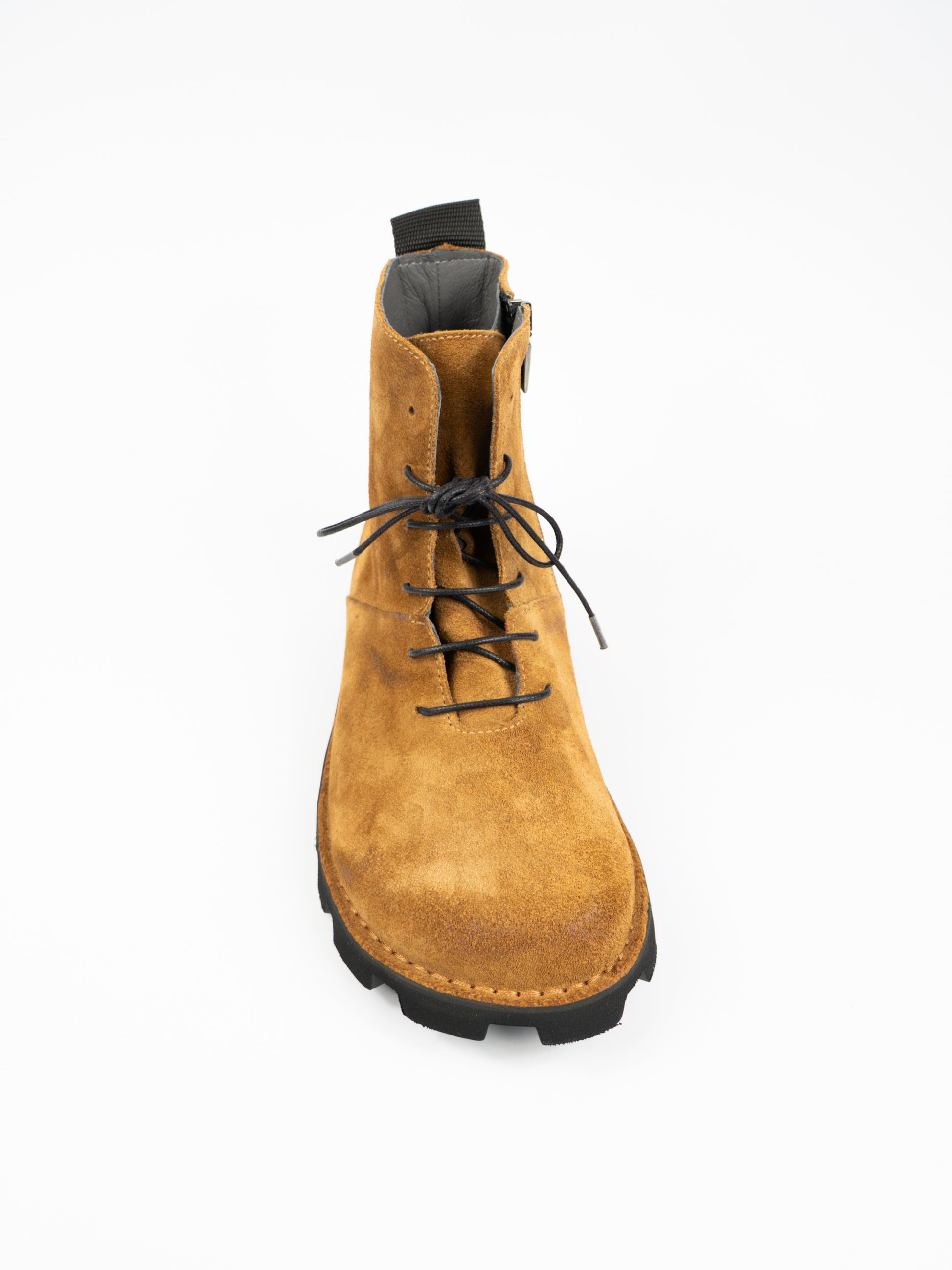 Gaiši brūni zamšādas zābaki ar rāvēju sānā.