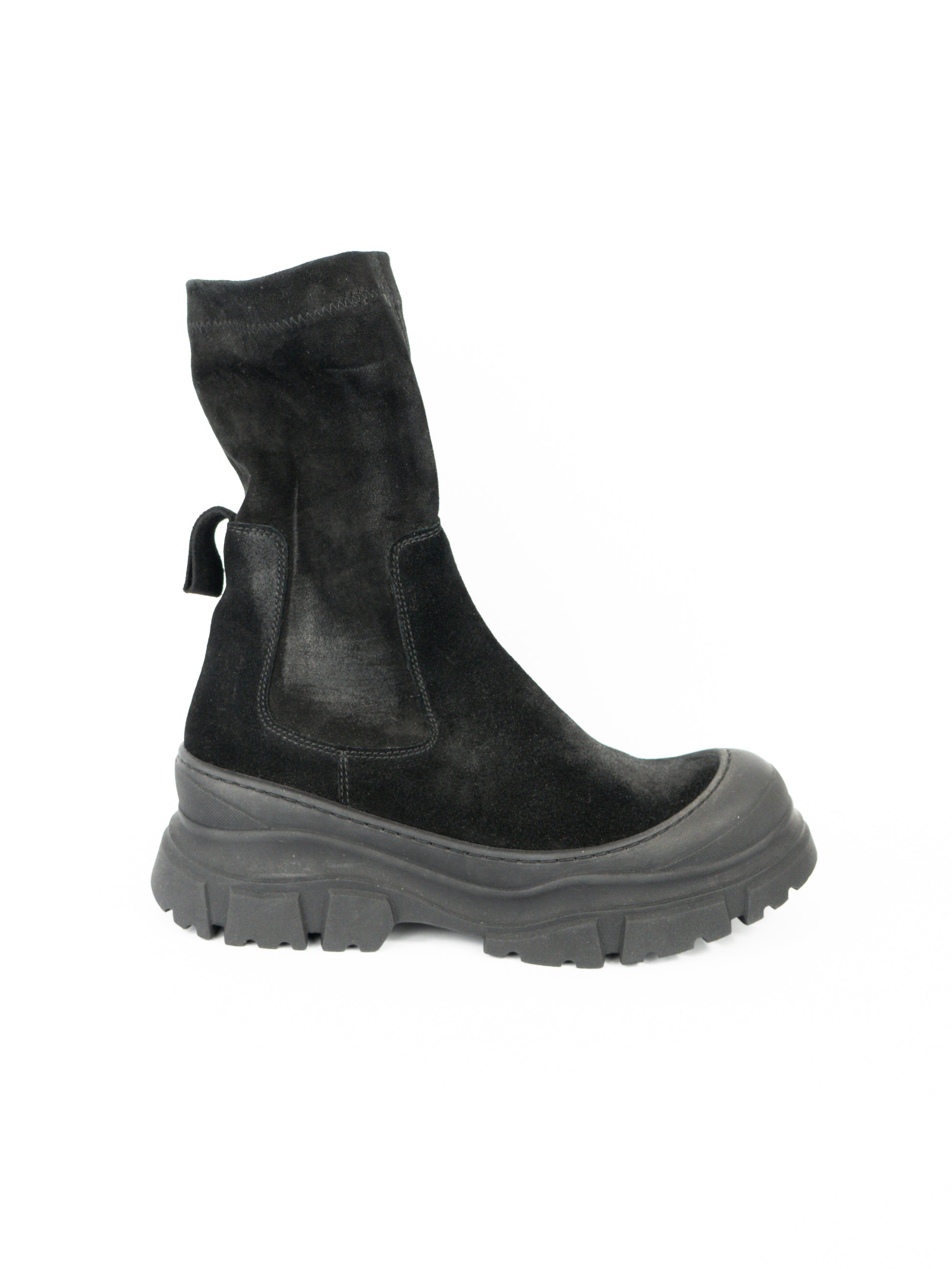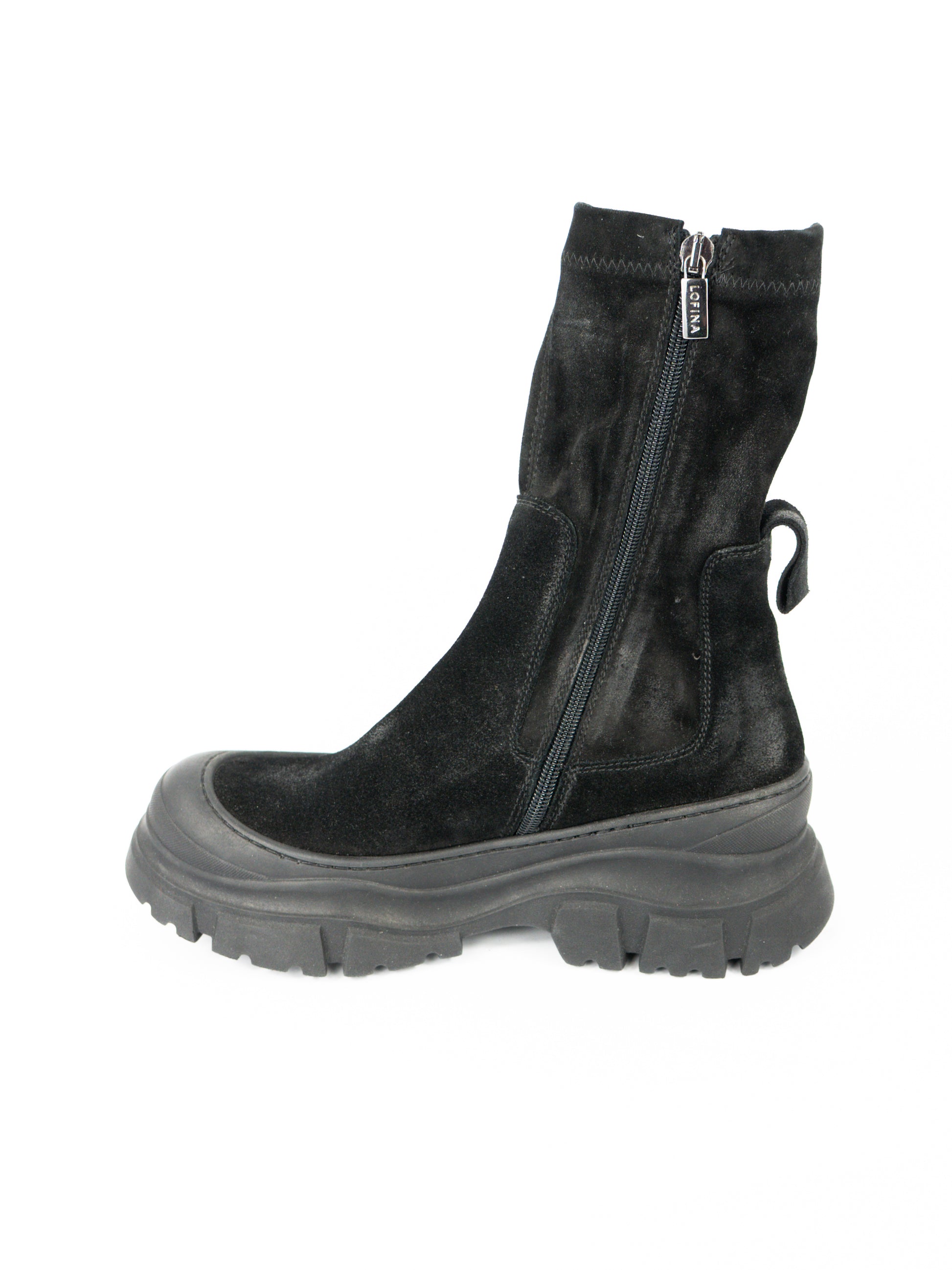 Zamšādas zābaki ar biezu zoli un rāvēju aizmugurē.