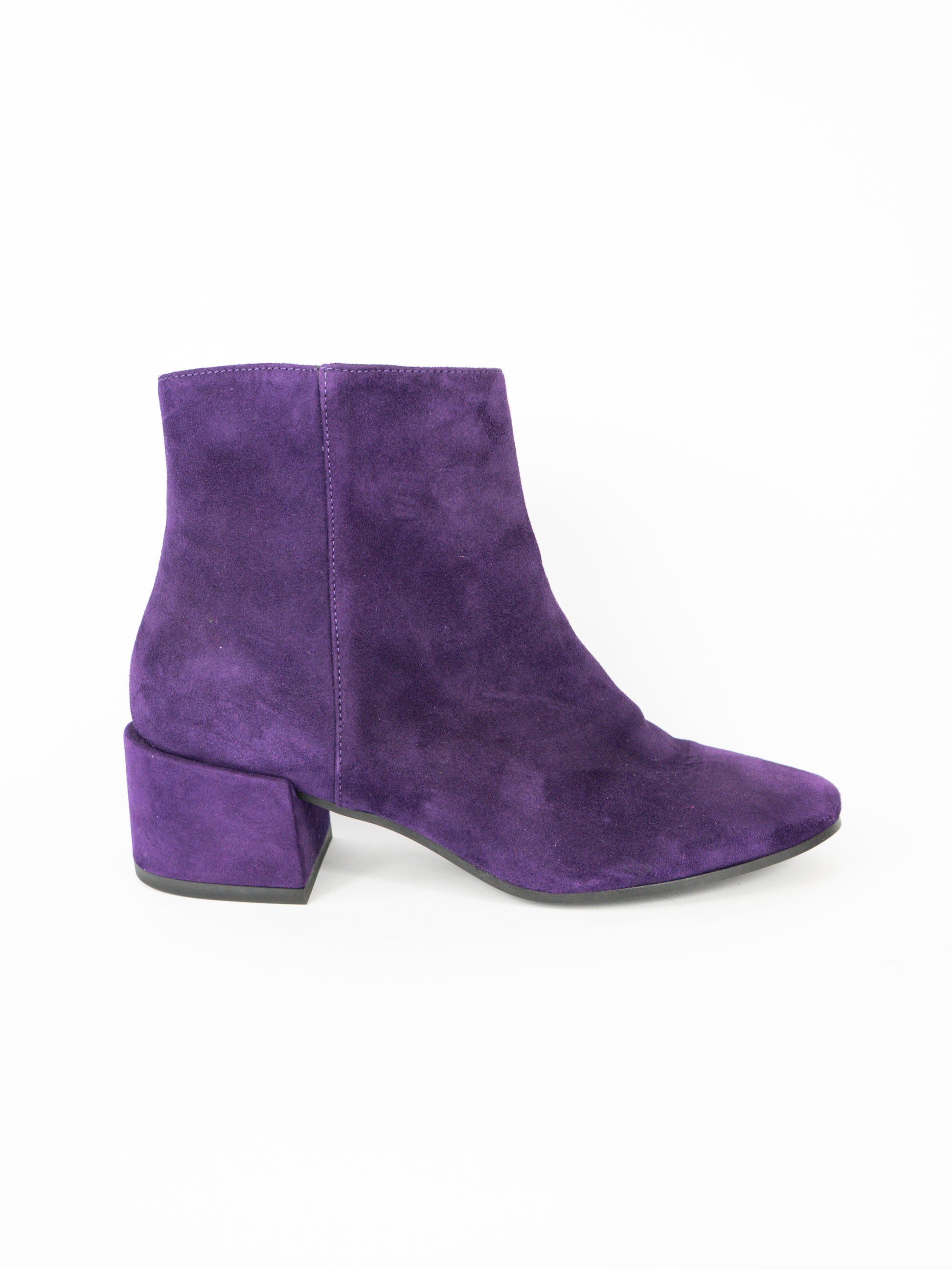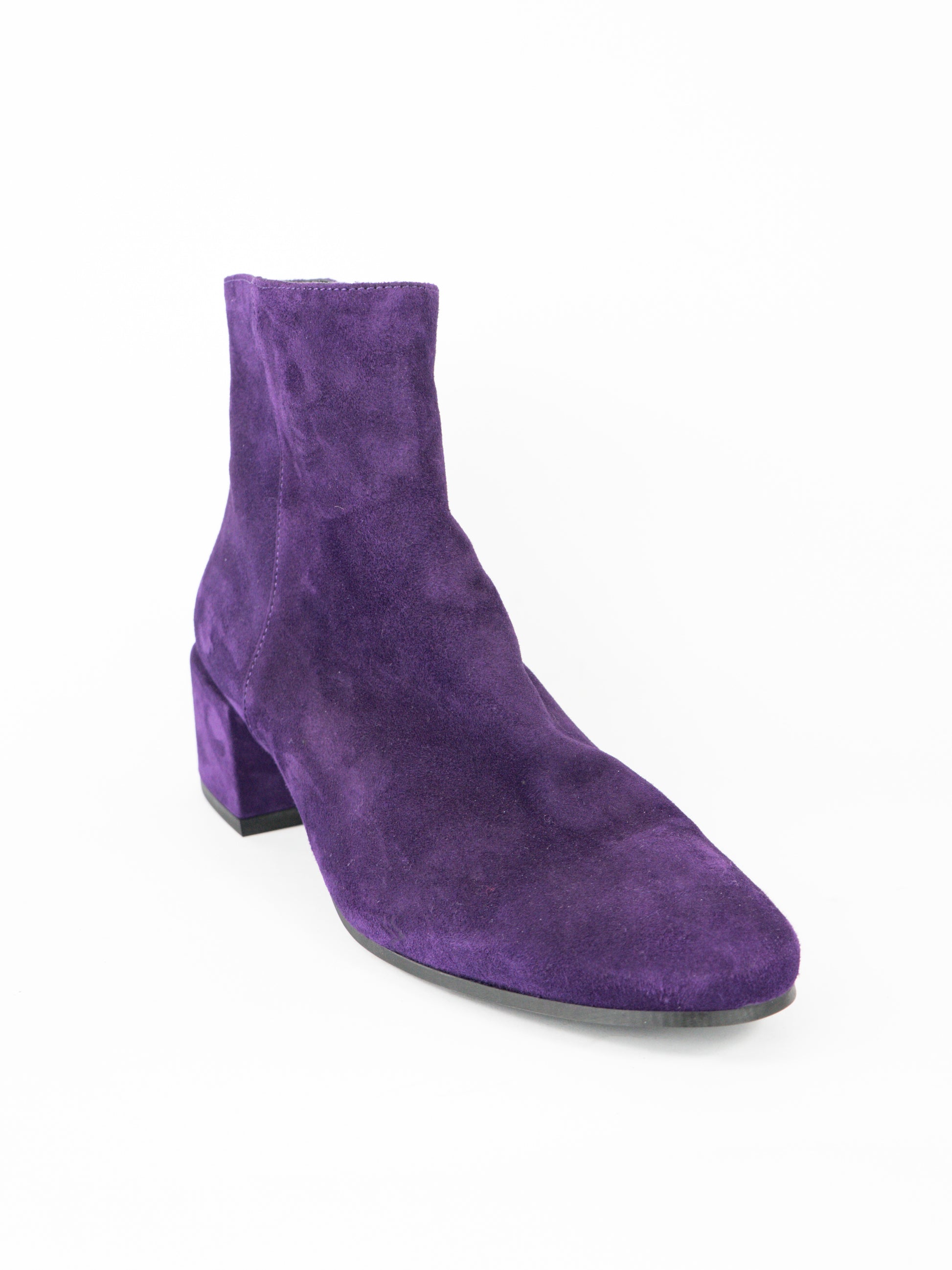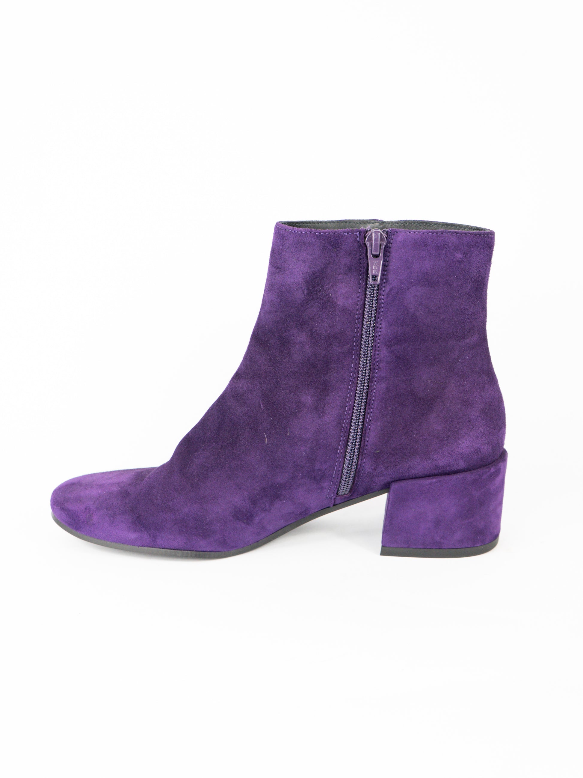 Violeti zamšādas zābaki ar rāvēju sānā.
