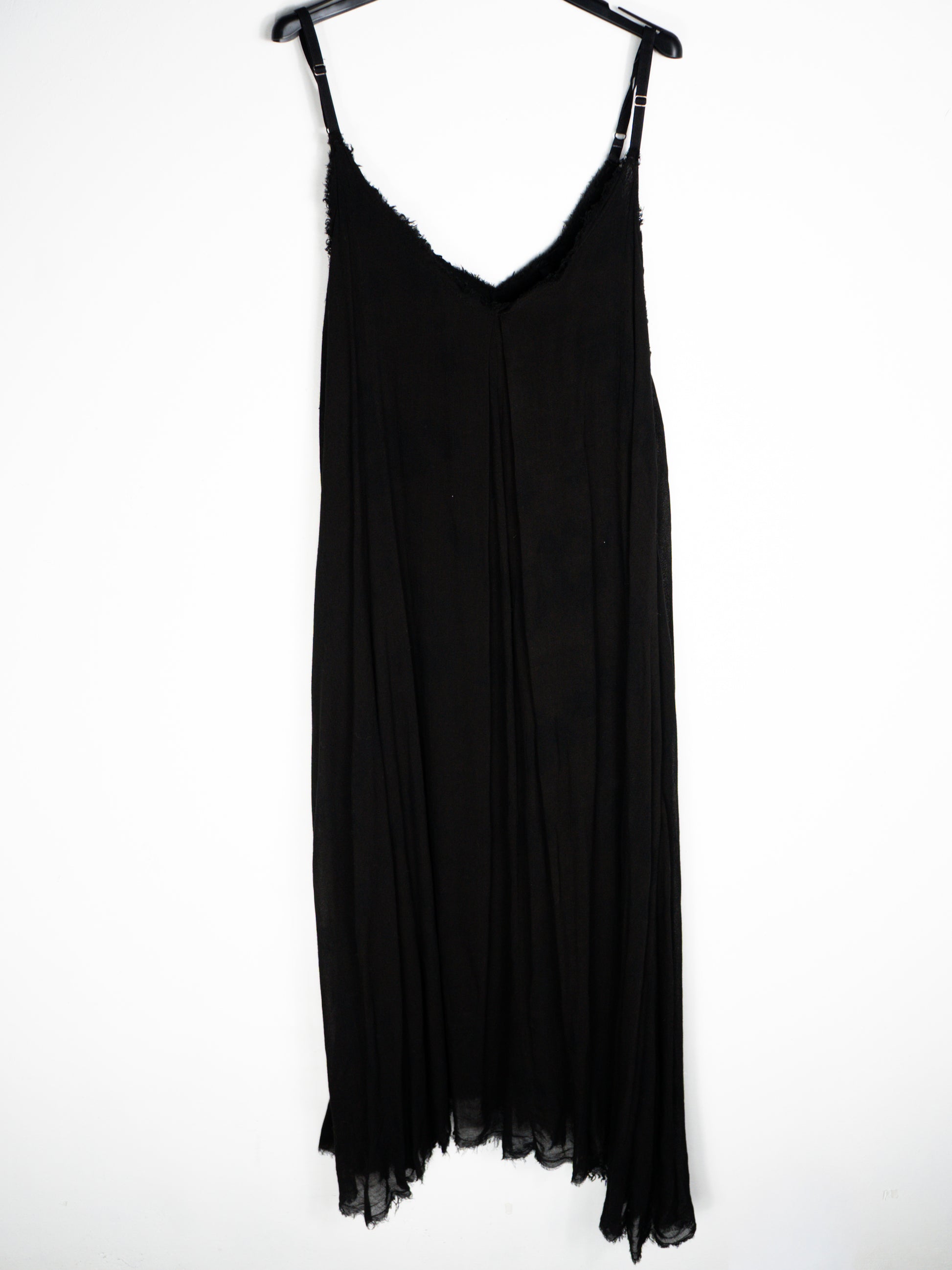 Melna kleita ar regulējamām lencēm un kabatām. 80% viskoze, 20% vilna.
