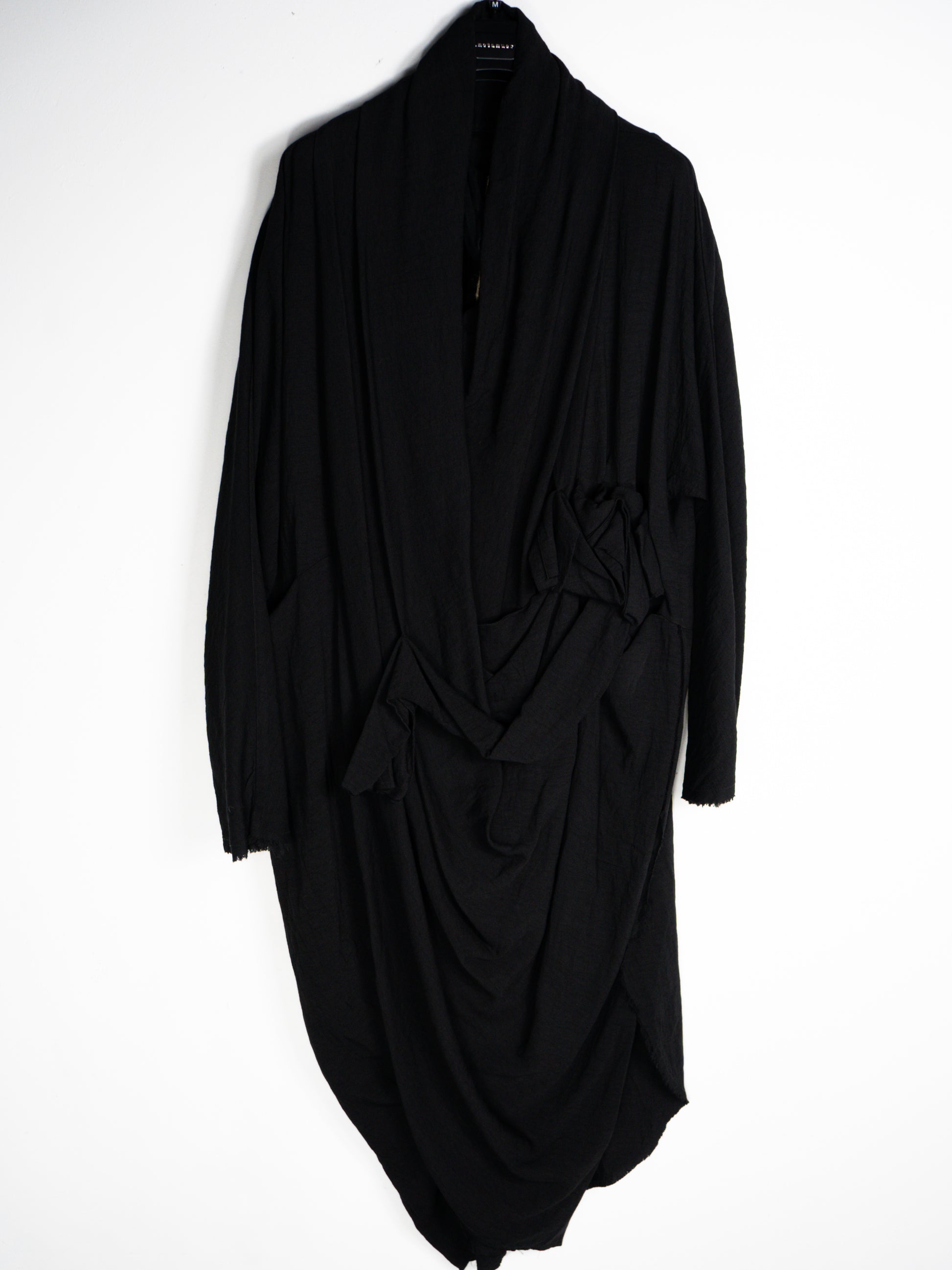 Melna kleita ar kabatām. 87% viskoze, 13% poliamīds.