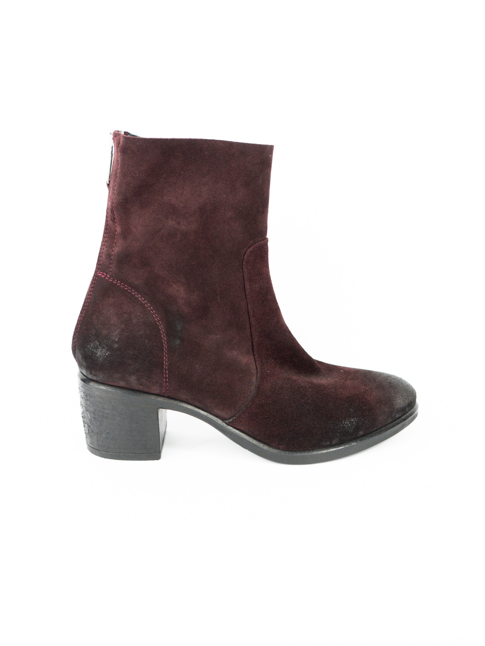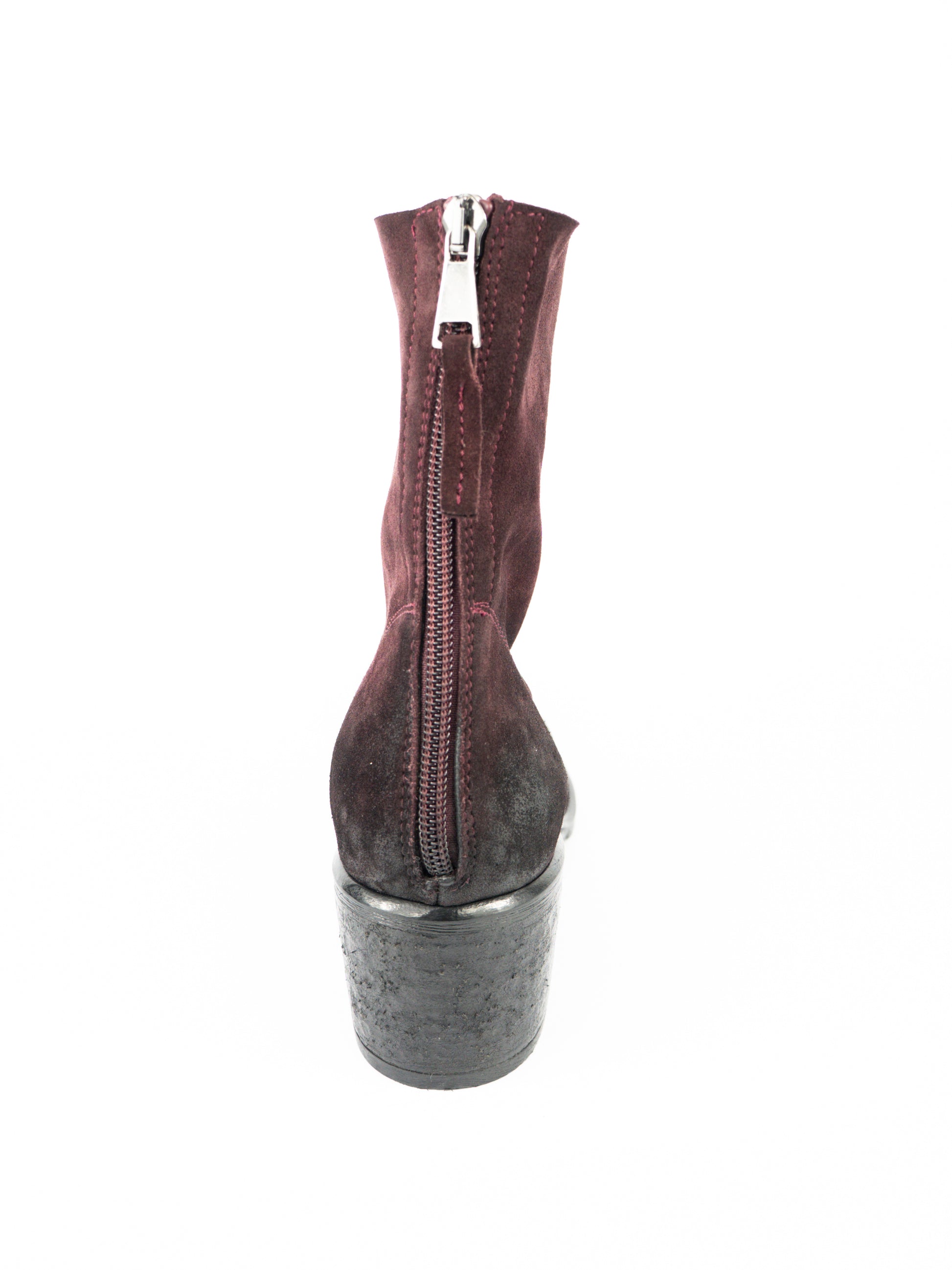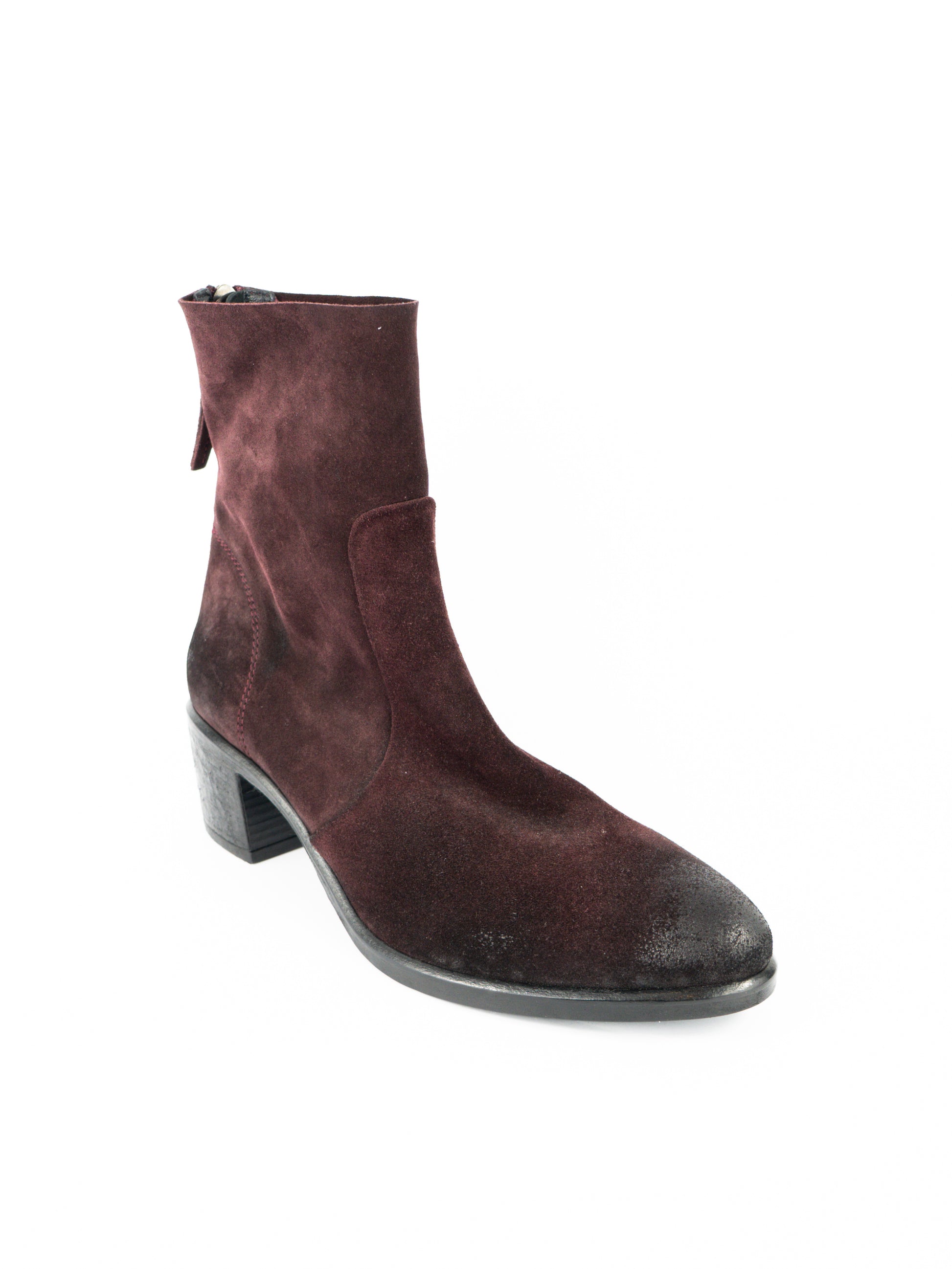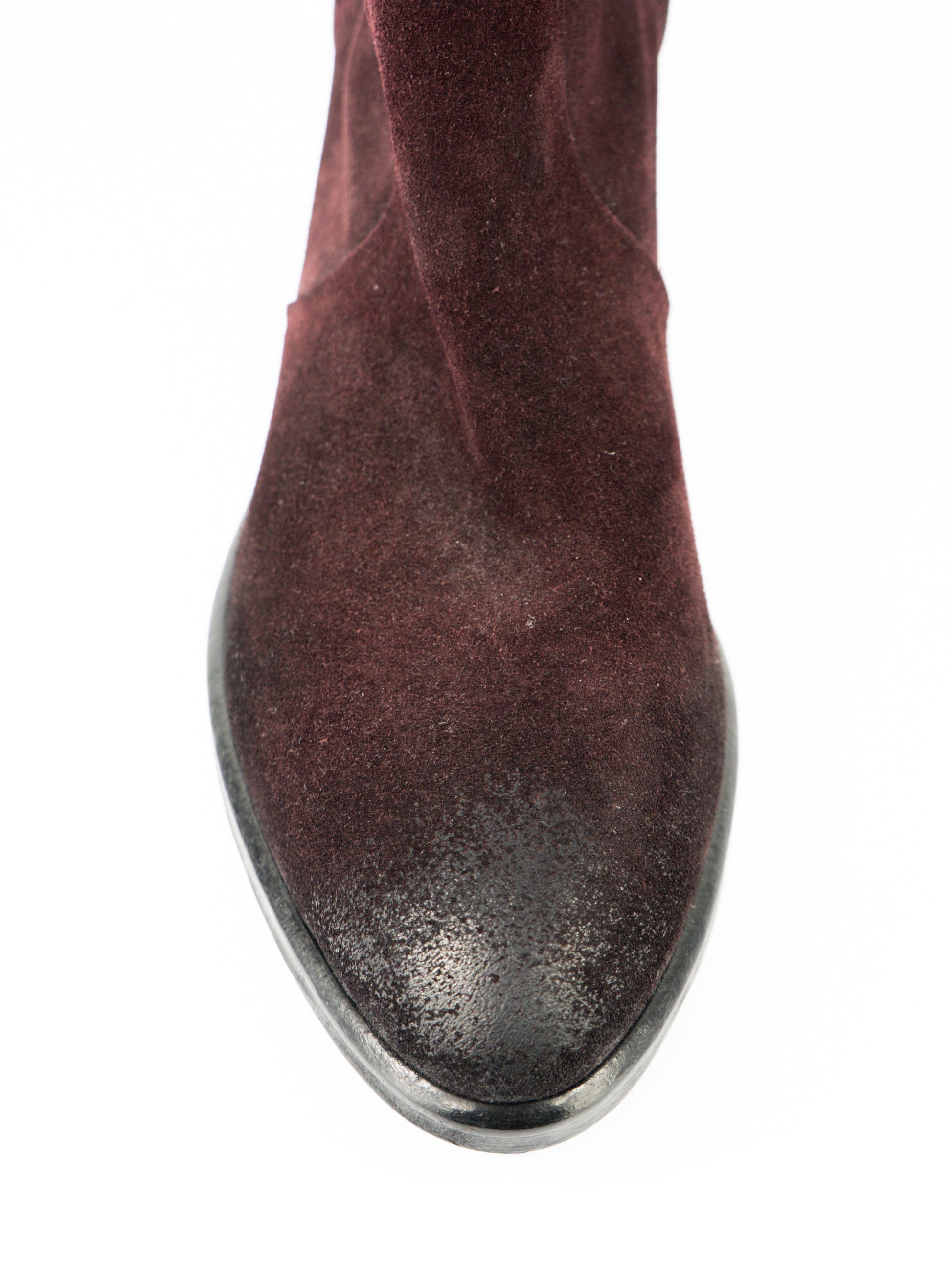 Zamšādas zābaki tumši sarkanā krāsā. Aizmugurē rāvejs.