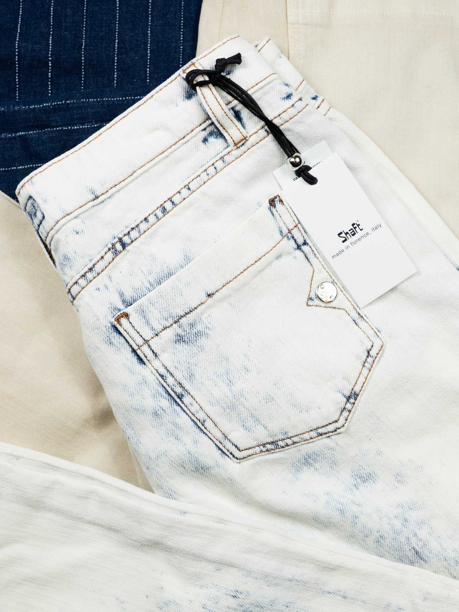 Shaft ir zīmols no Florences. Džinsi, kas radīti Toskānā un Markē, apvieno komfortu, elastību un izturību. Zīmols nepārtraukti iegulda pētniecībā un attīstībā, izzinot jaunus izšuvumus, modernizētas lāzertehnoloģijas, stepēšanas un adatas caurduršanas efektus, kā arī jaunas mazgāšanas metodes.