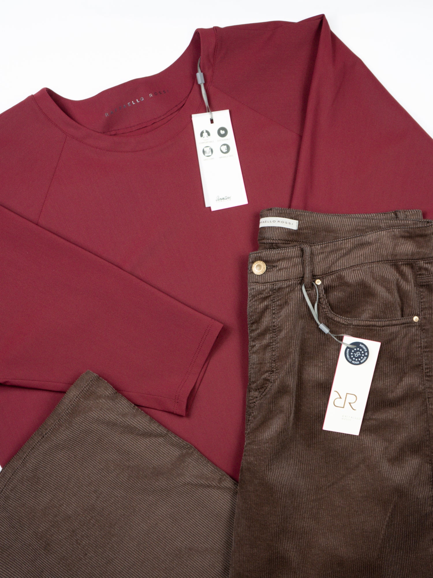 Raffaello Rossi rada modernas, izmalcinātas, izcilas kvalitātes un piegriezuma bikses, kā arī apģērbus no elastīga, neburzīga, ātri žūstoša auduma, kas ir ideāli piemērots ceļojumiem un dinamiskai idienai. Ražots Eiropā.