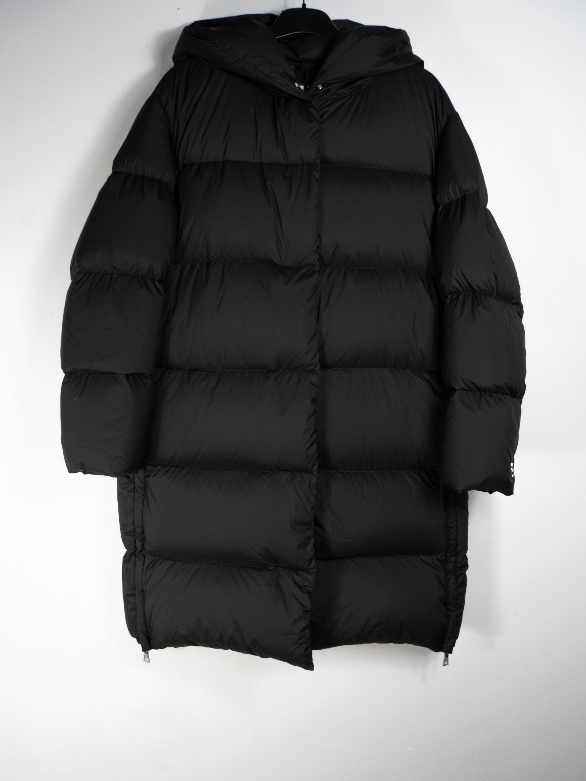 Vidēja garuma mētelis ar rāvēju un spiedpogām. Kapuci var pārveidot par apkakli. Ūdens atgrūdošs audums, kas iztur vieglu lietu. 95% zosu dūnas, 5% zosu spalvas.