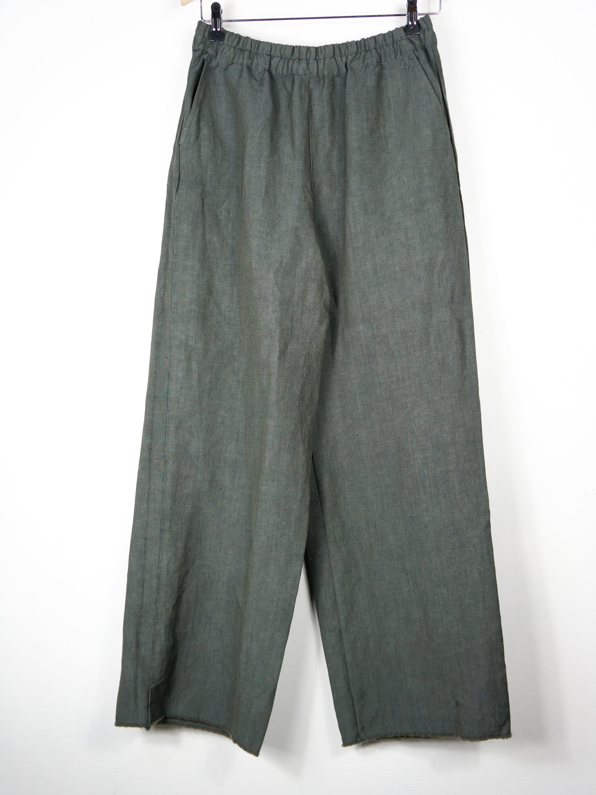Bikses ar nelielu spīdumu. 50% lins, 50% neapstrādāta vilna (virgin wool).