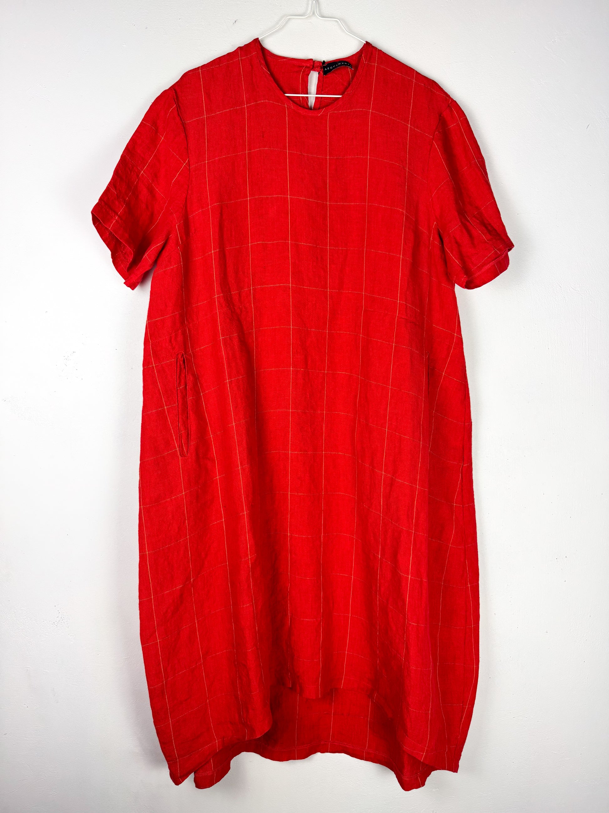 Rūtaina kleita ar kabatām. 100% lins.