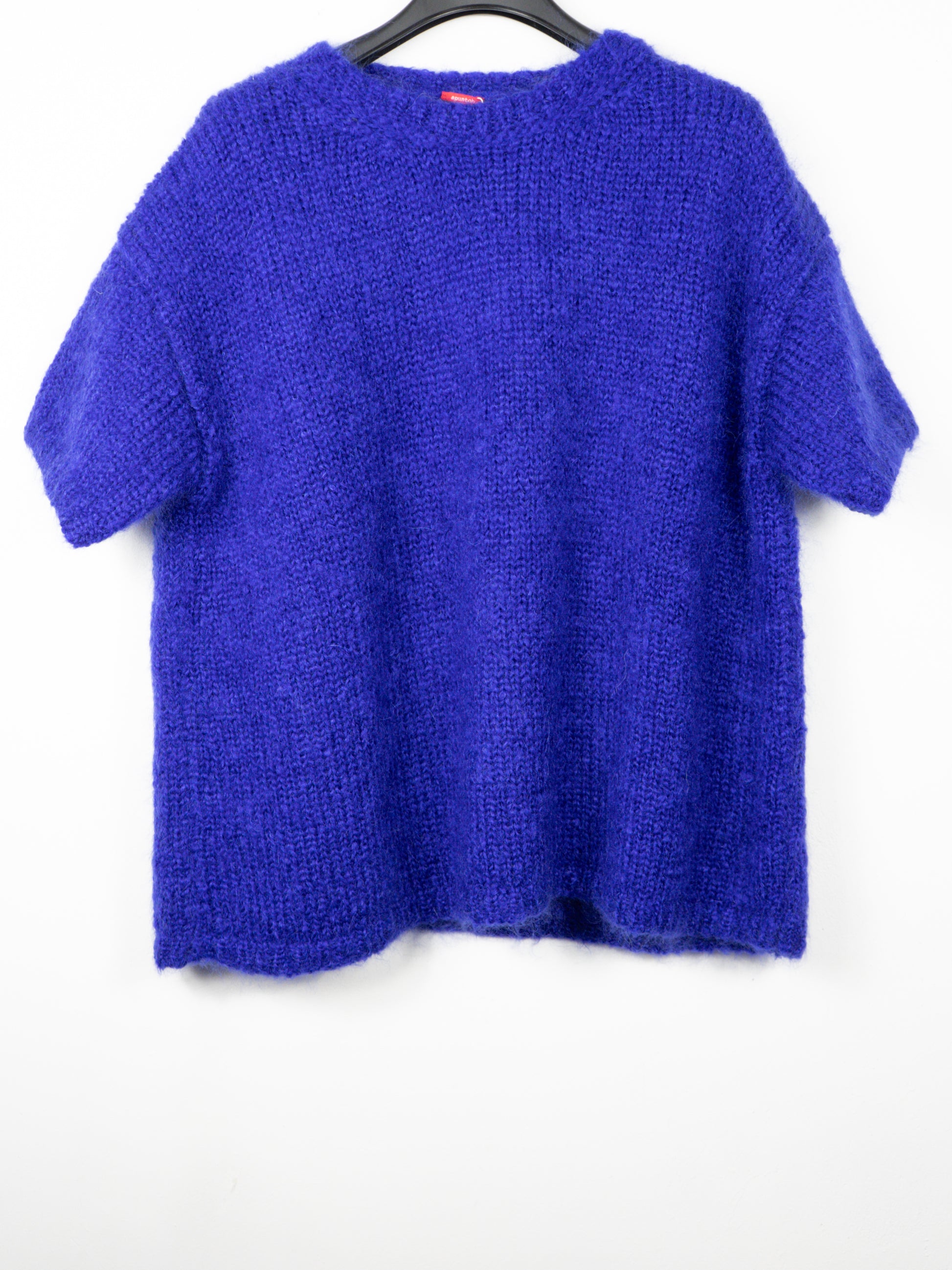 Mohēras džemperis ar īsām piedurknēm. 85% mohēra, 15% poliamīds. Tonis - elektriski zils.