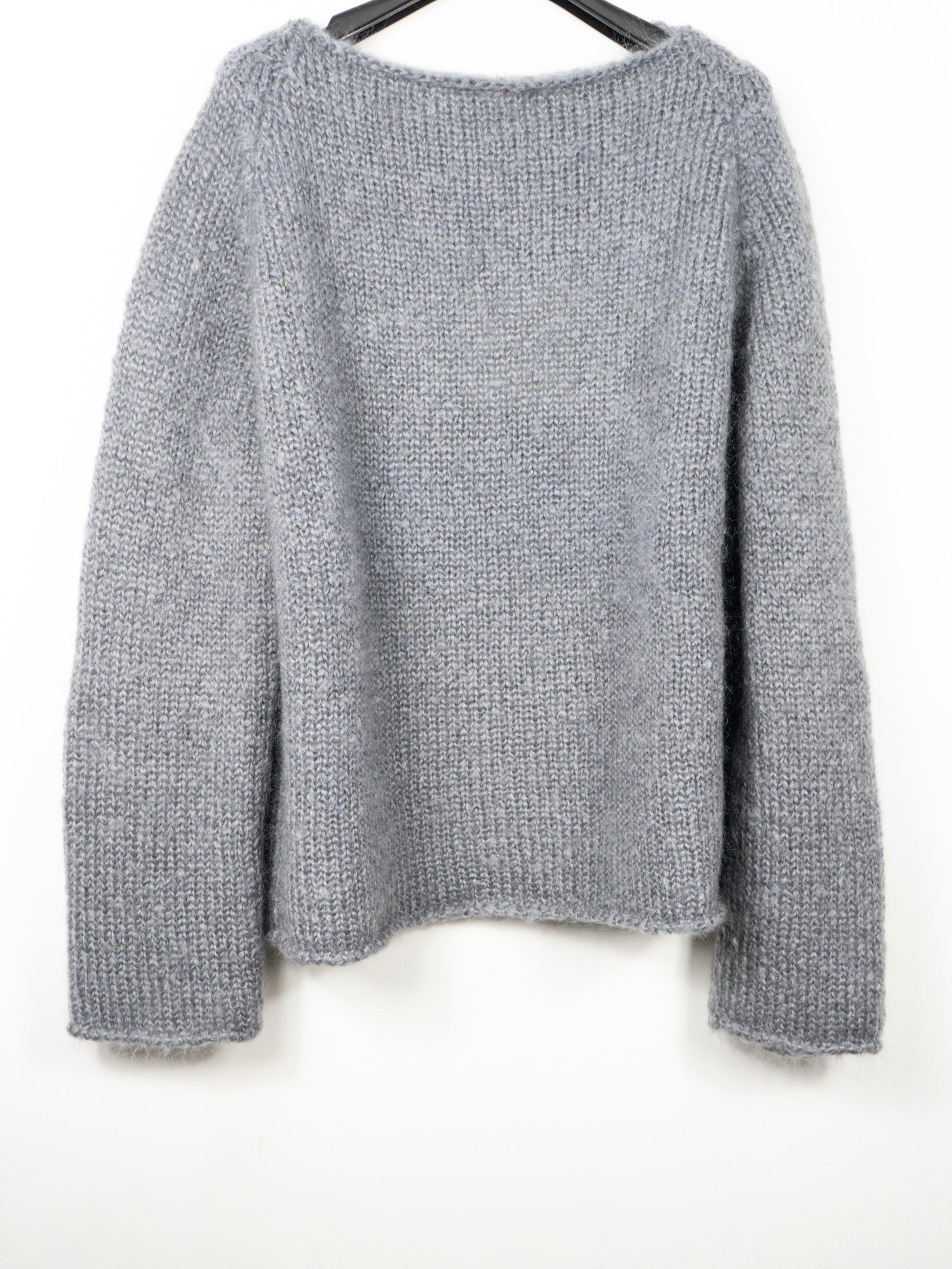 Pelēks, mīksts mohēras džemperis. 85% mohēra, 15% poliamīds.