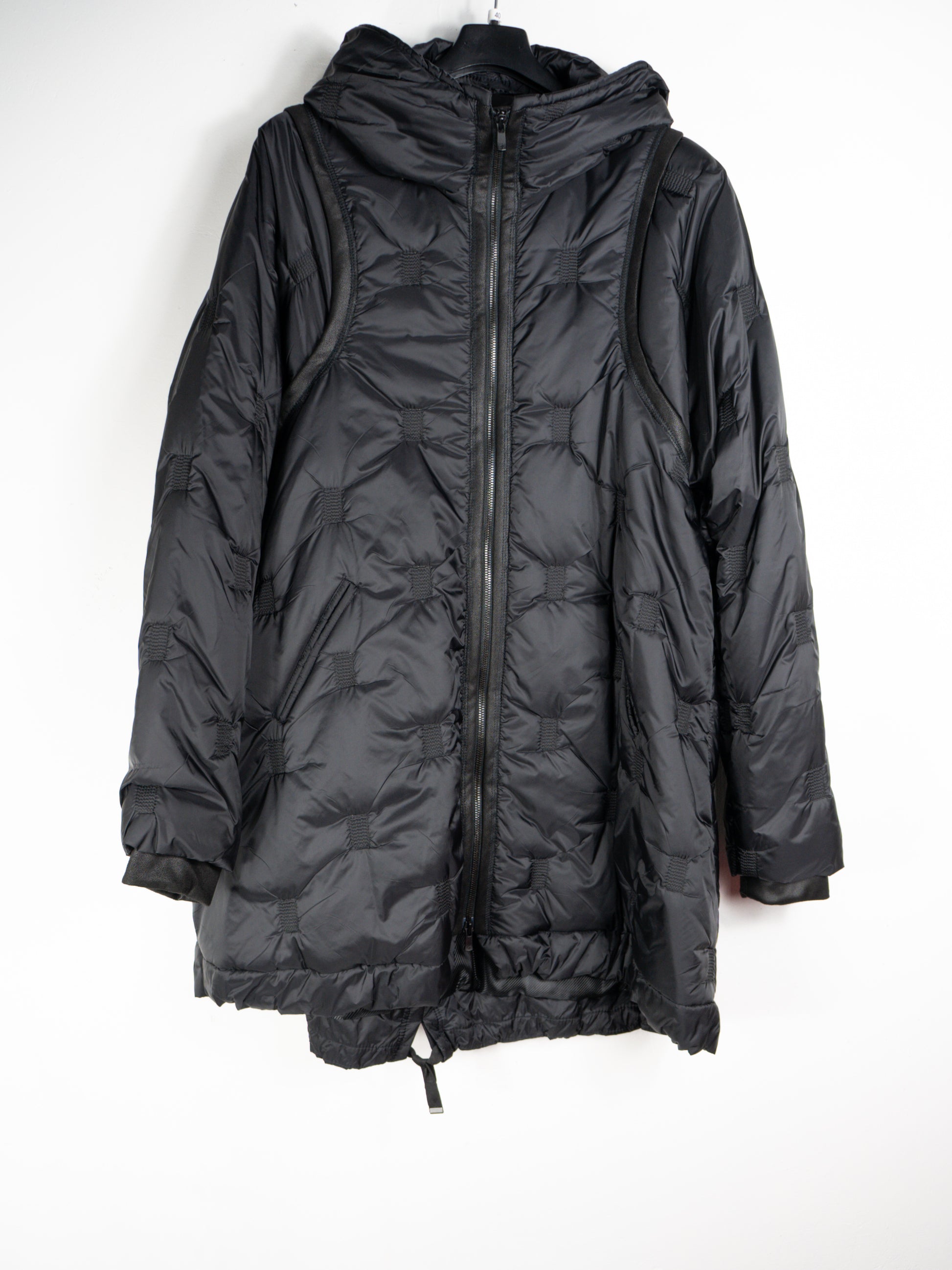 Melna jaka ar faktūru. Aizmugure nedaudz garāka un savelkama.