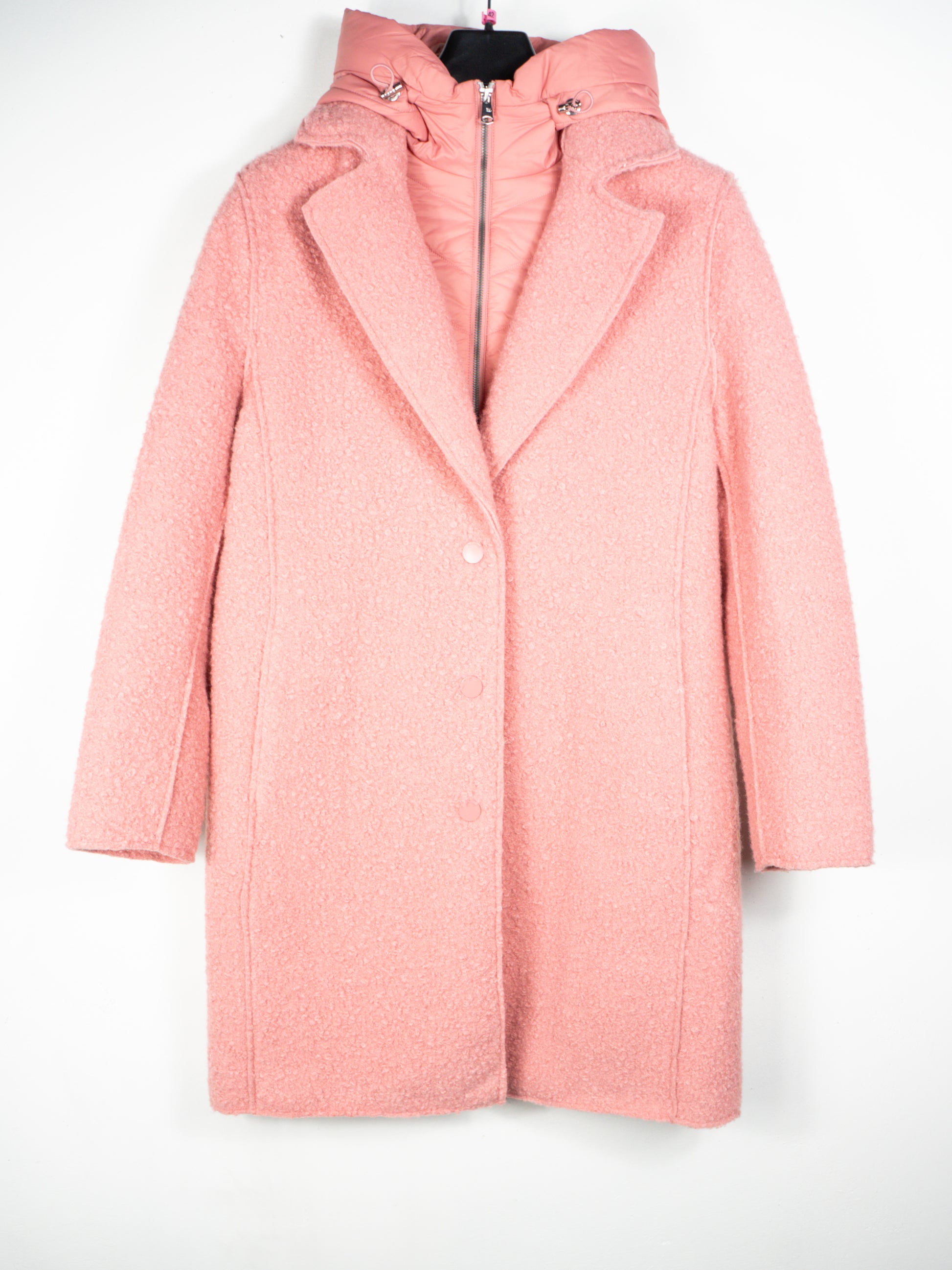 Mētelis ar stepētu iekšpusi. Noņemama kapuce un siltinājums priekšpusē. Kapuci var savilkt. 100% poliesters.
