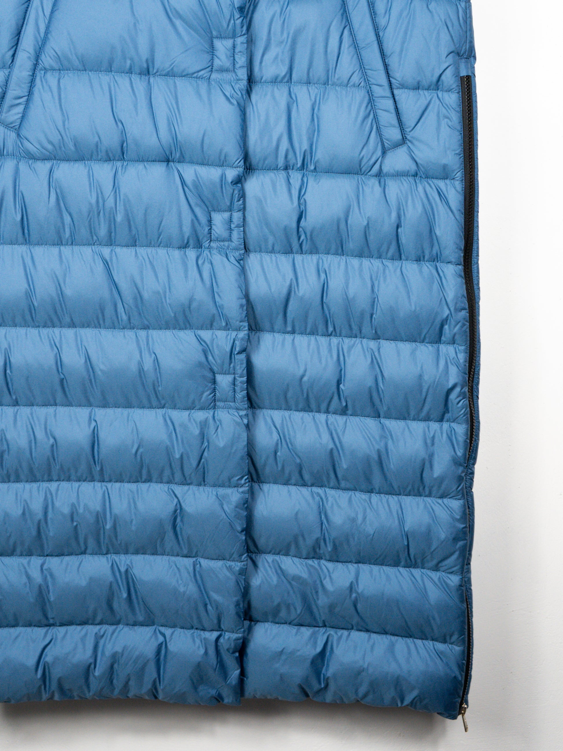 Gara, zila veste ar eko dūnu pildījumu. Ar spiedpogām, kapuci, kabatām un rāvējiem sānos. Viegla un patīkama. 52% poliesters, 48% poliamīds; 100% poliesters.