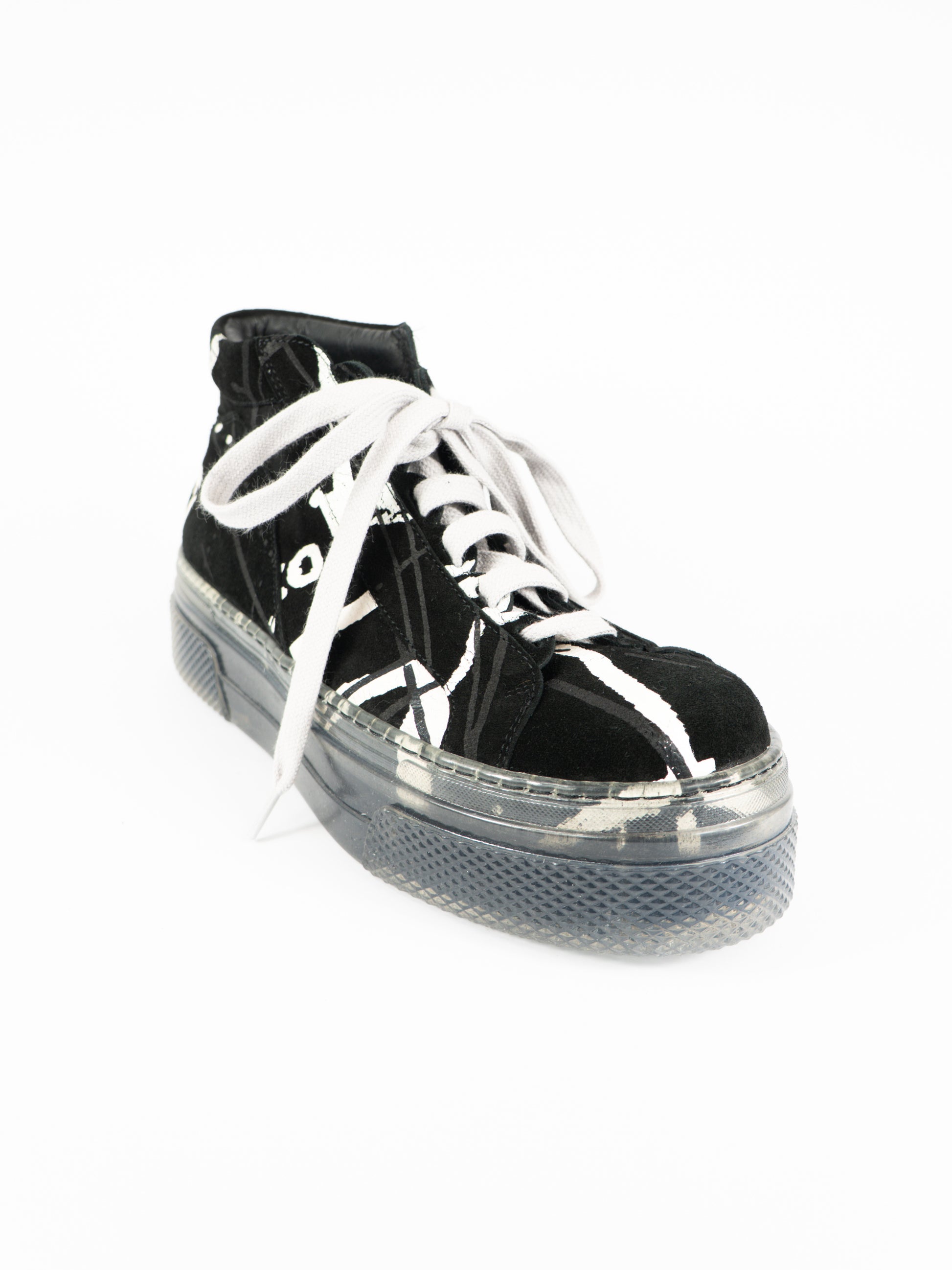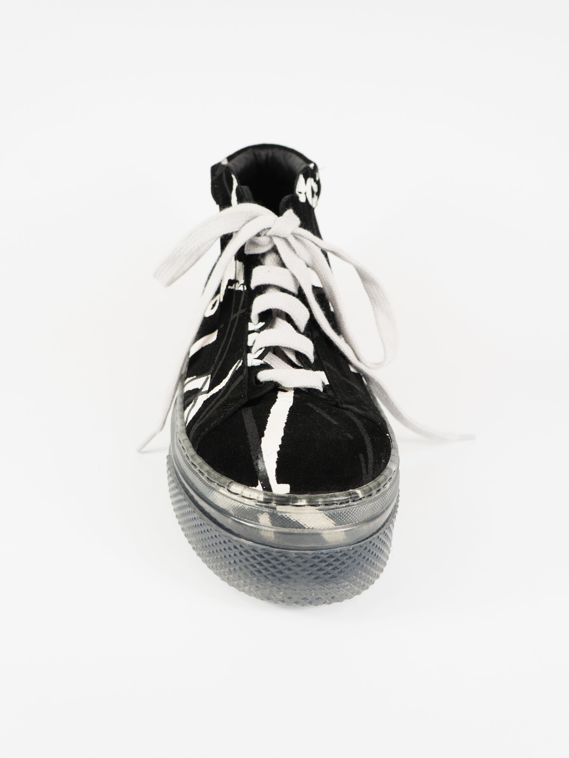 Melni zamšādas apavi ar grafisku rakstu. Ar paaugstinātu zoli.
