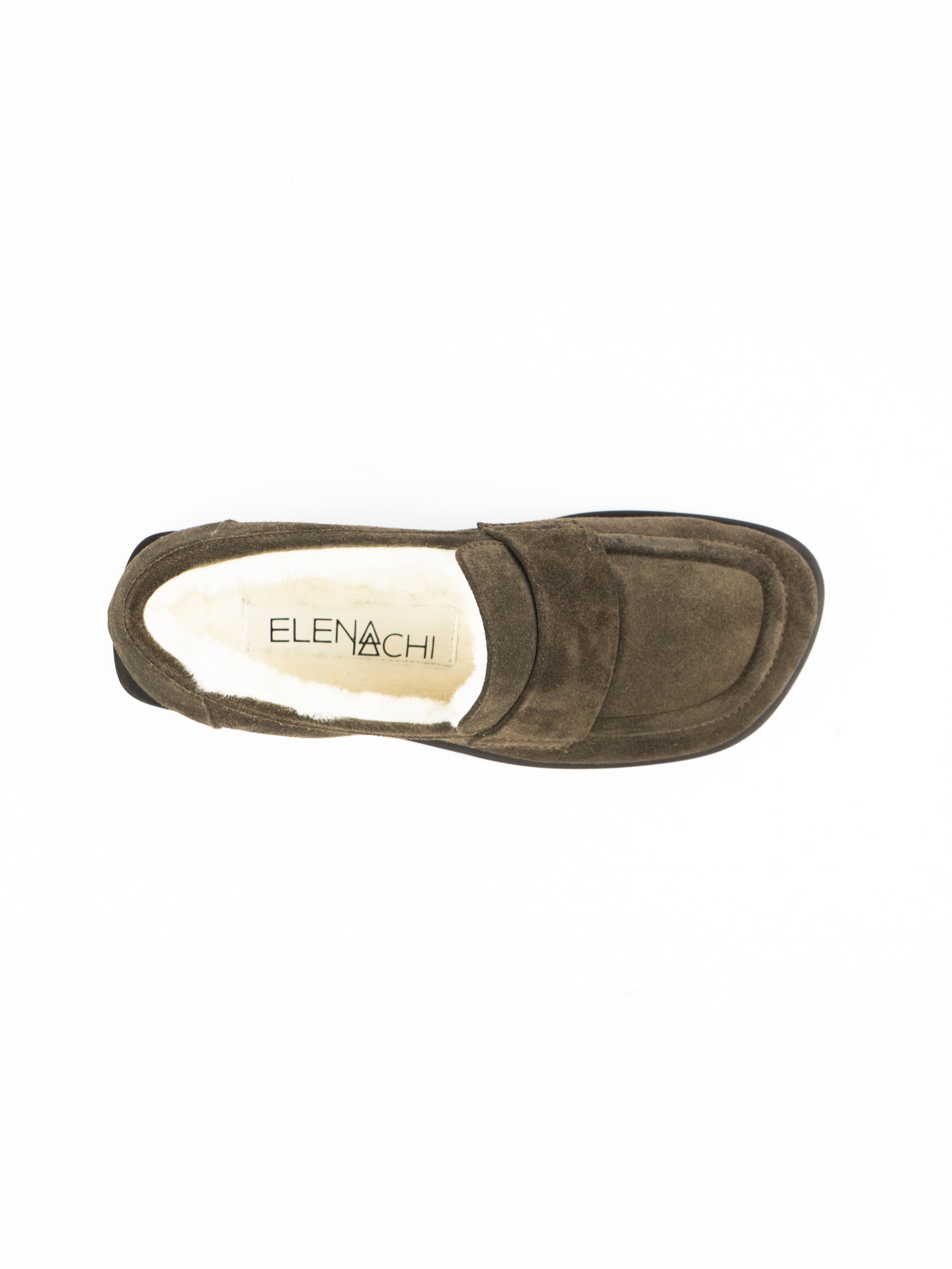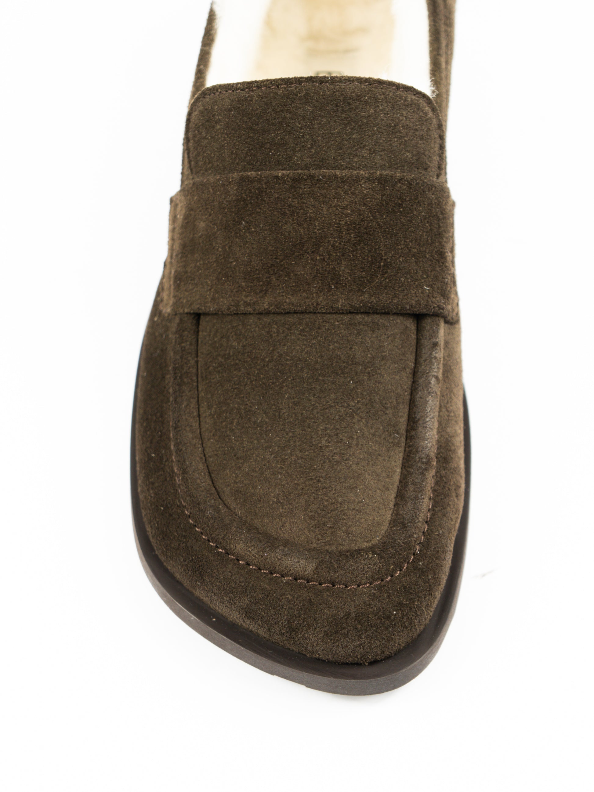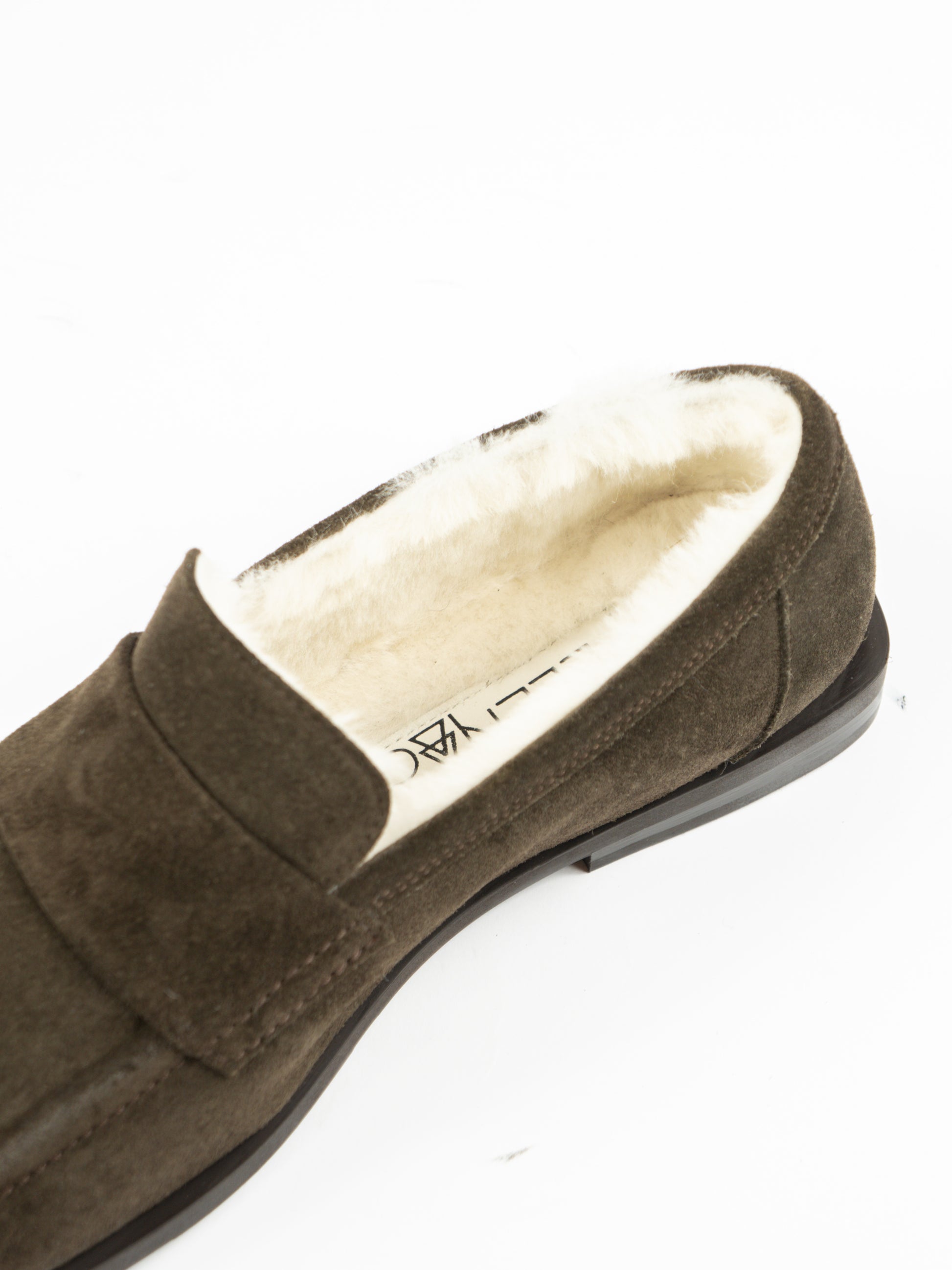 Brūnas zamšādas kurpes ar mīkstu, siltu iekšpusi.