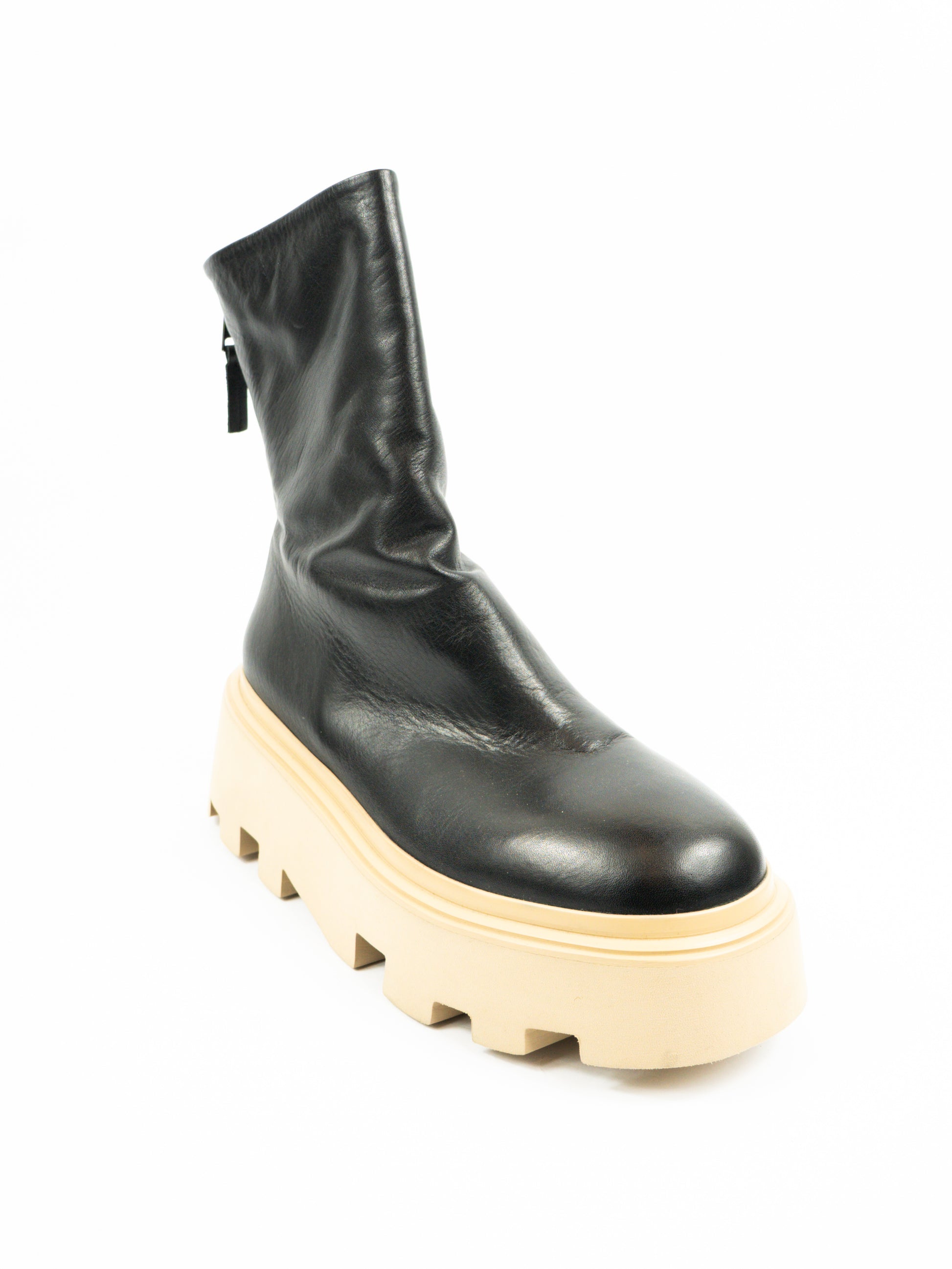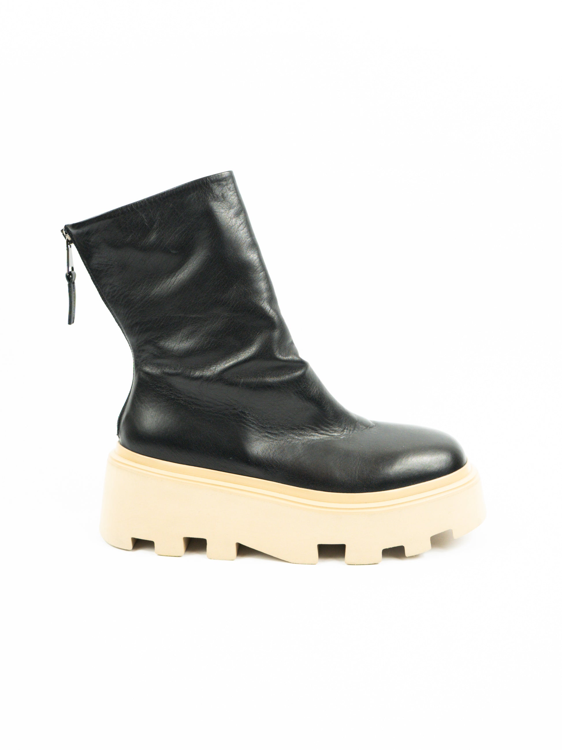Melni ādas zābaki ar rāvēju aizmugurē.