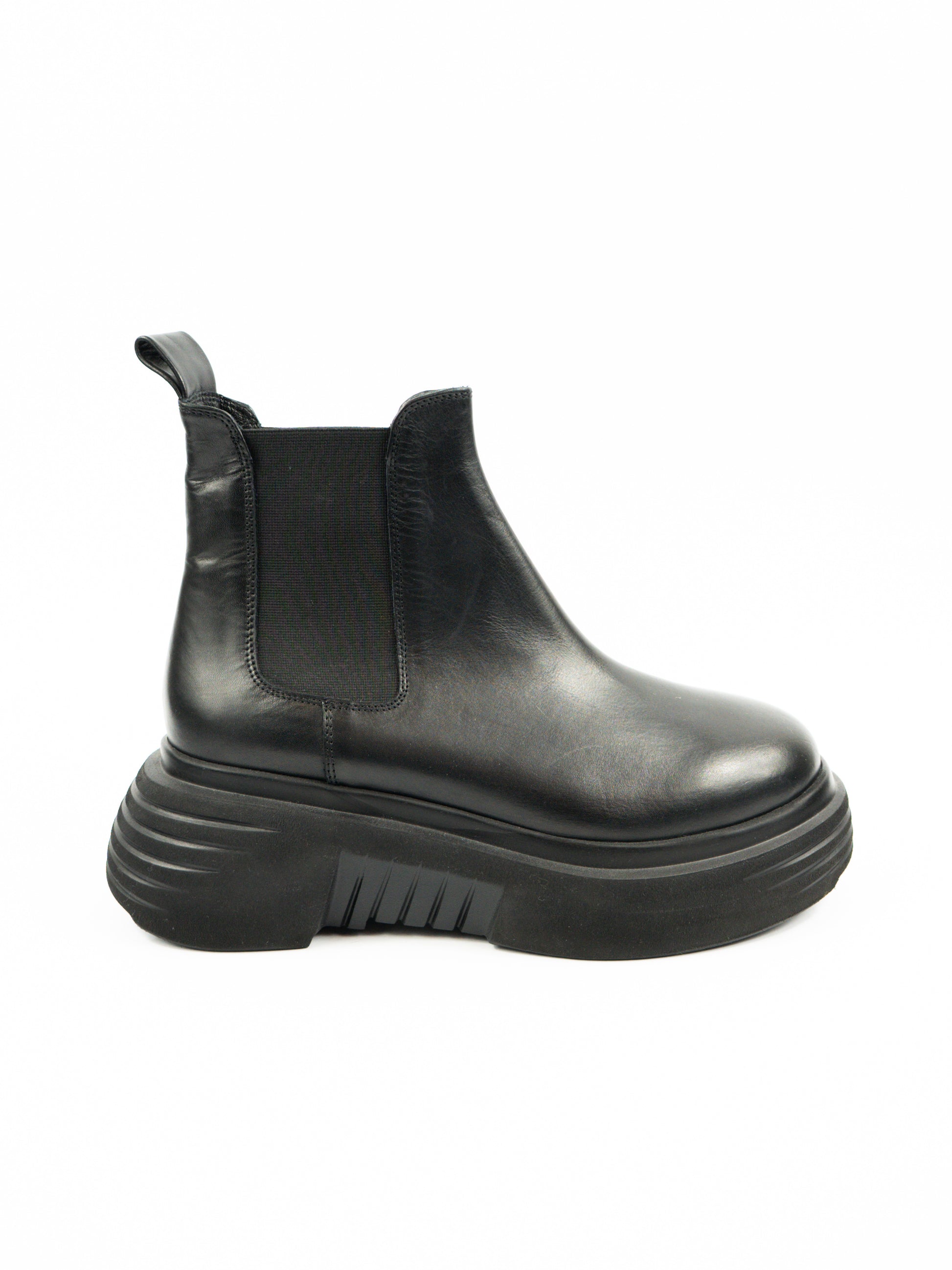 Melni ādas zābaki ar biezu zoli.