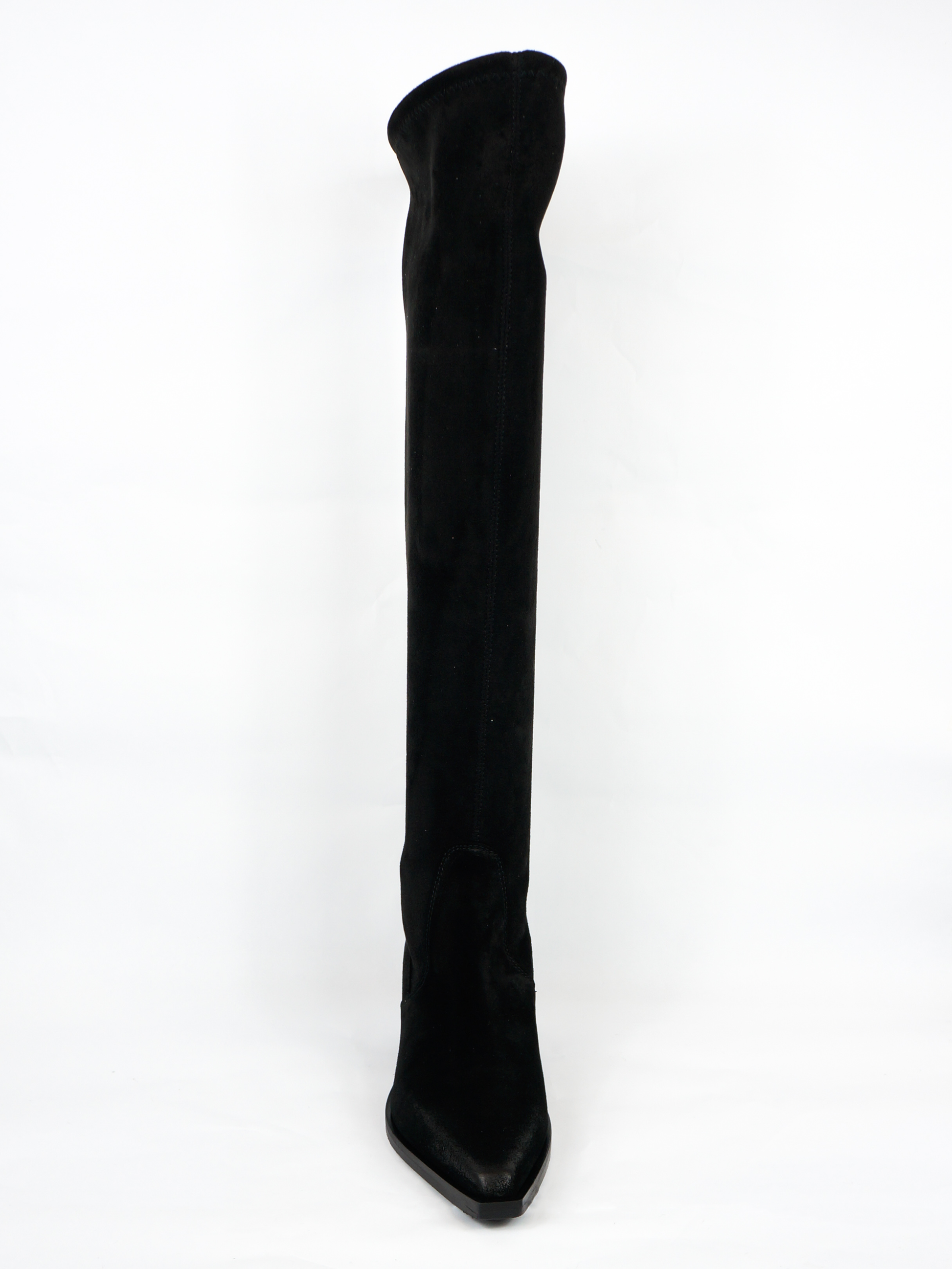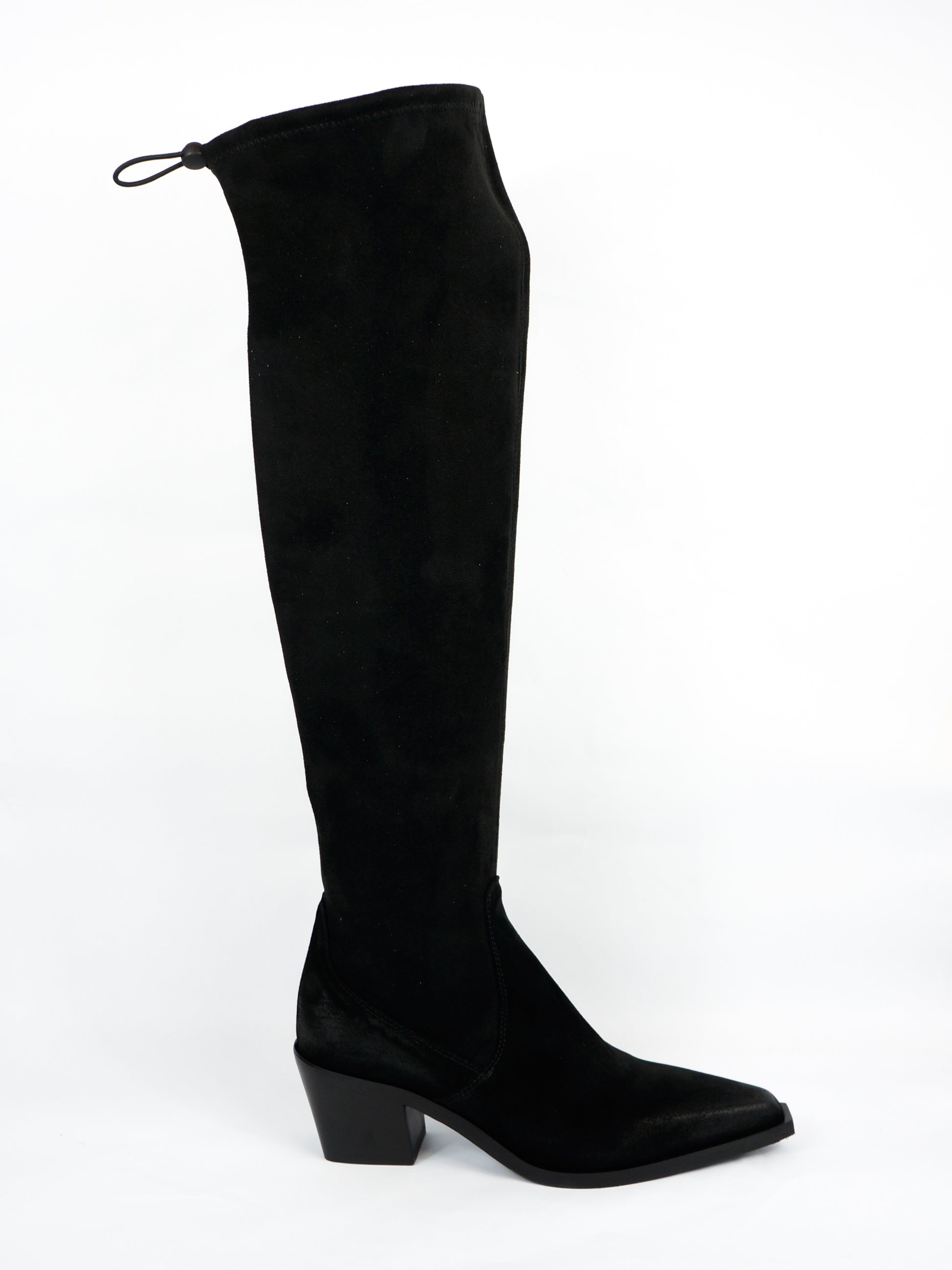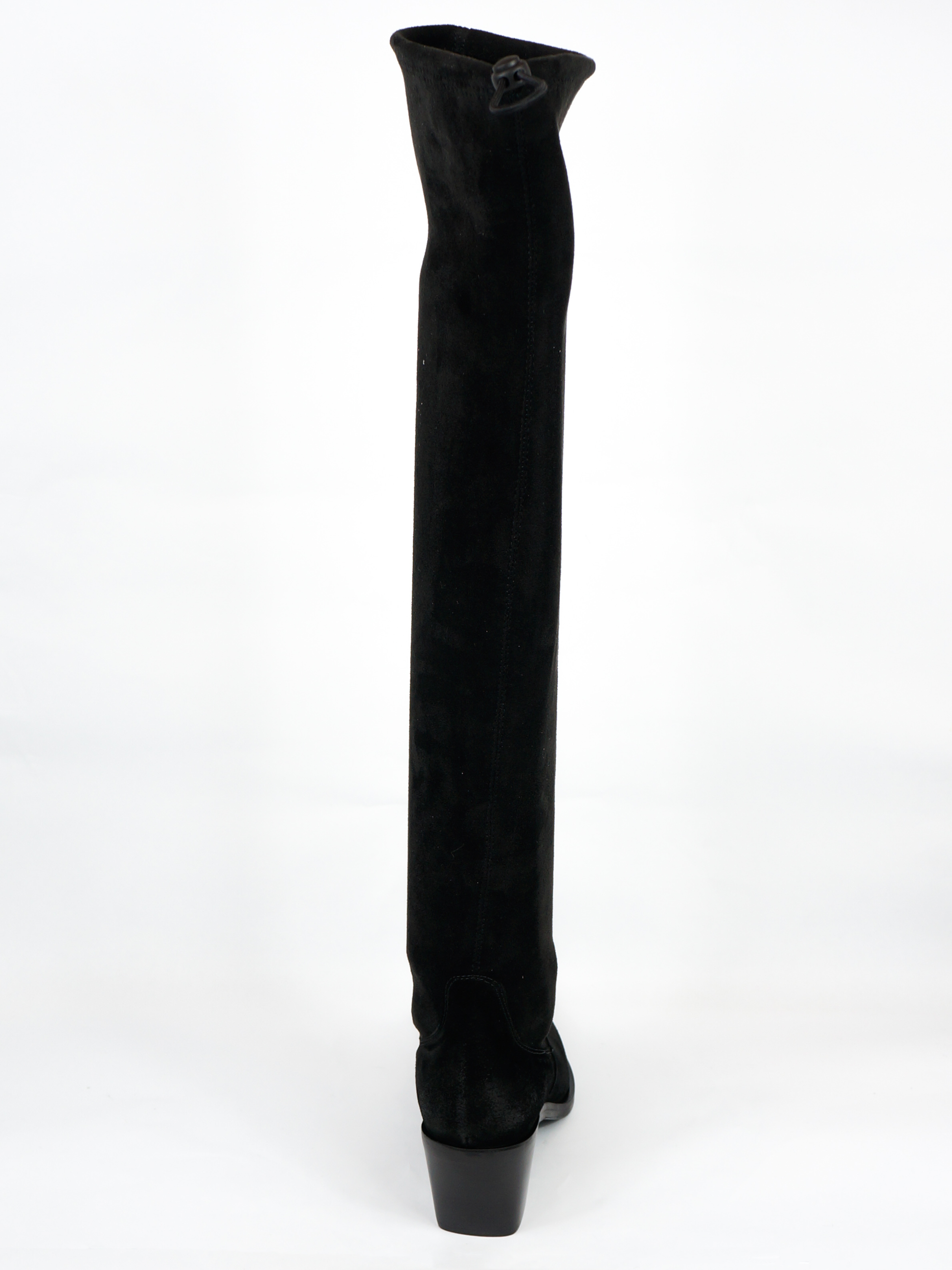 Kovbojtipa zamšādas zābaki ar savelkamu aizmuguri.