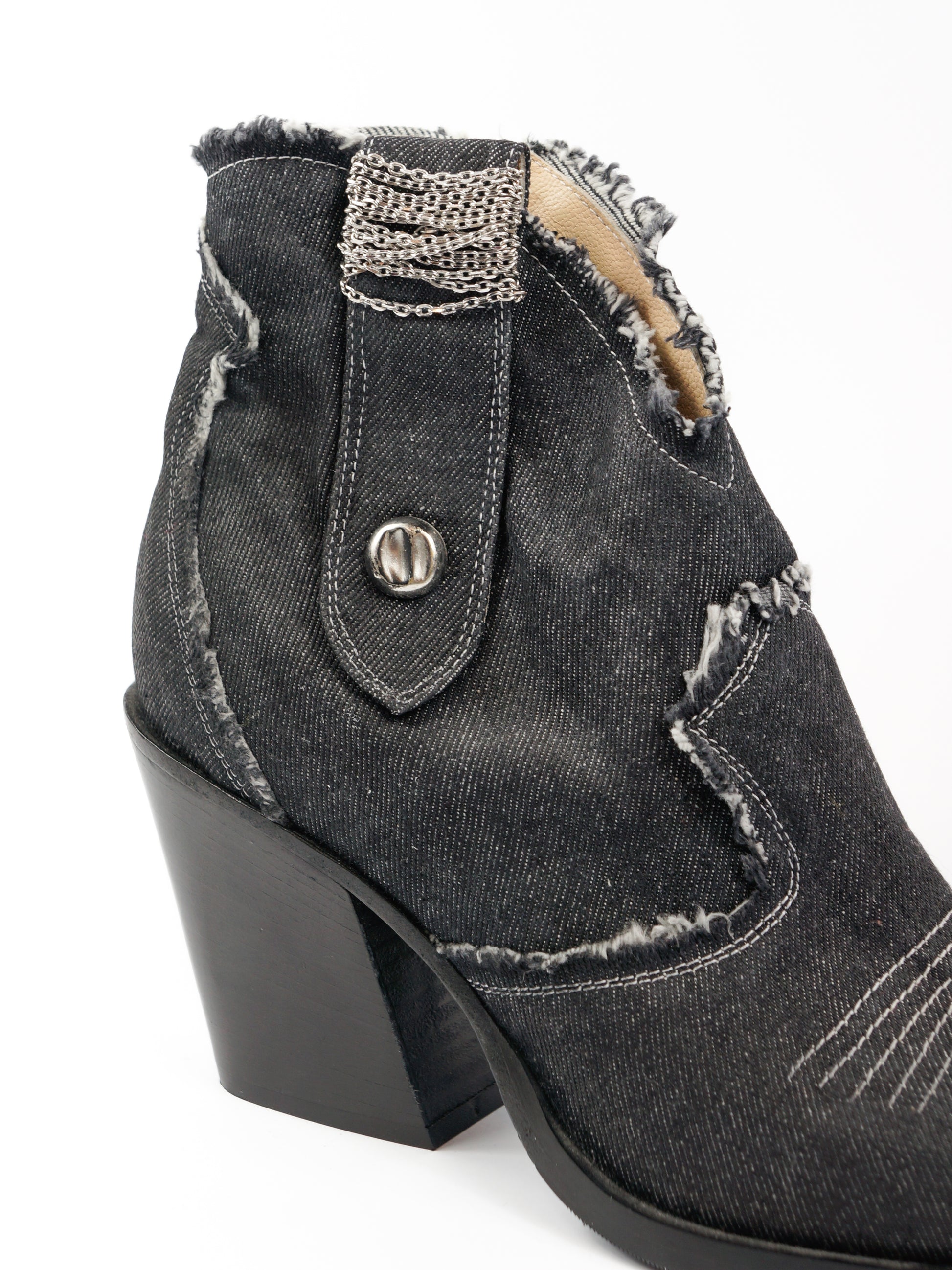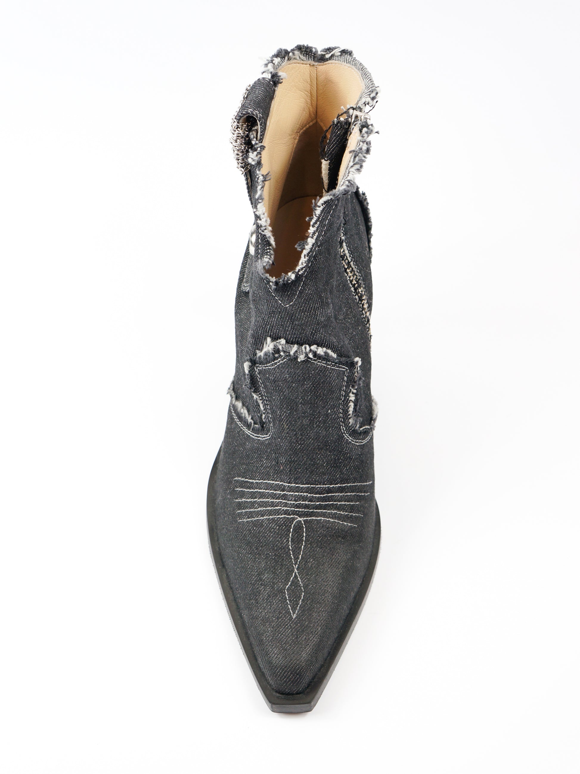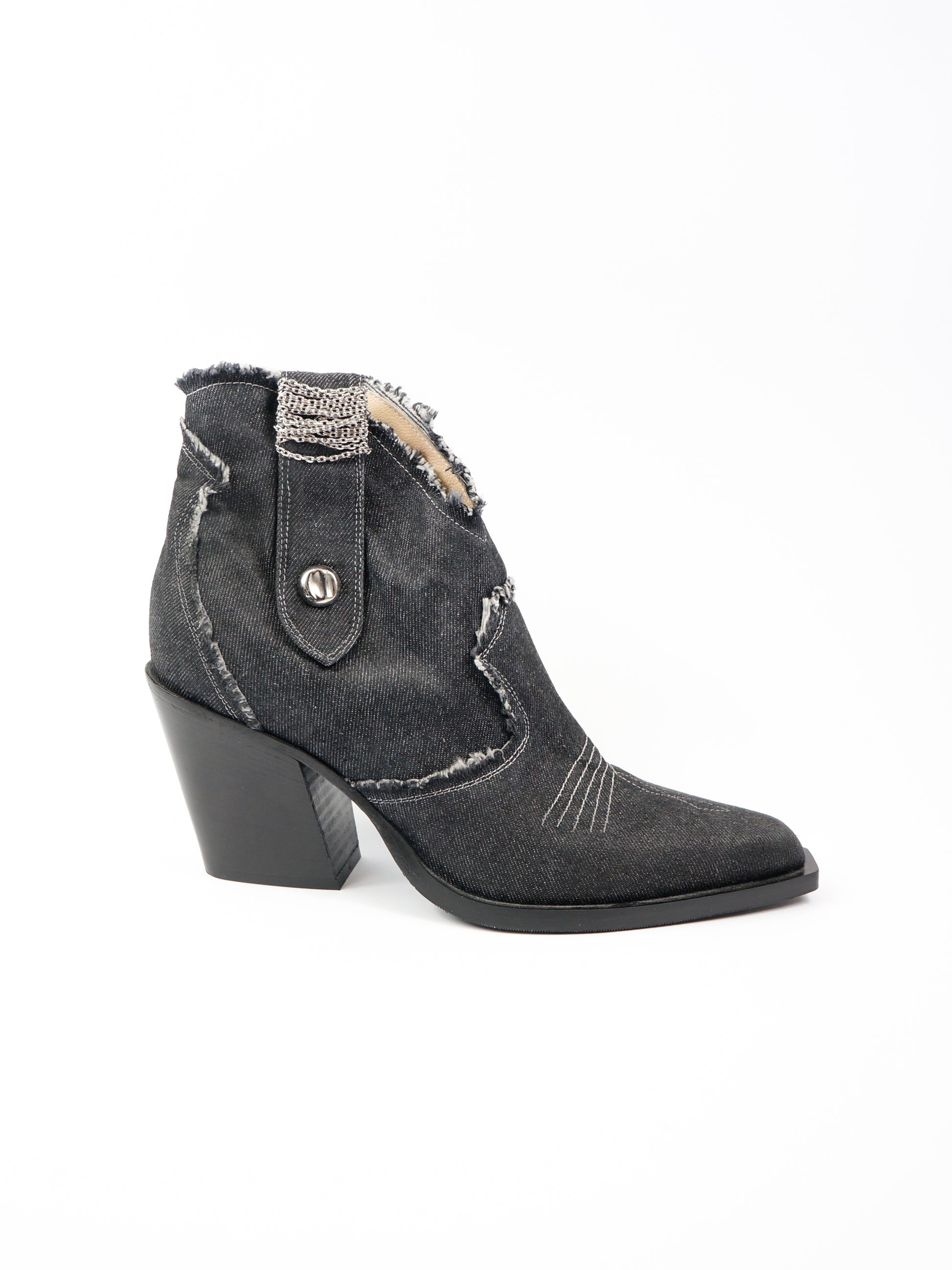 Kovbojtipa džinsa zābaki ar ādas iekšpusi. Sānā rāvējs.