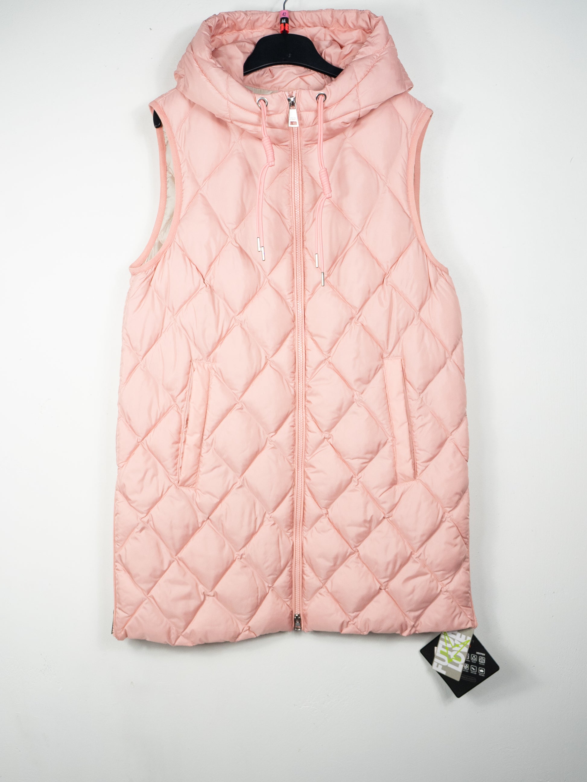 Viegla, rozā, vidēja garuma veste ar pildījumu, kapuci, savelkamu augšdaļu, ar kabatām iekšpusē un ārpusē. Veste pildīta ar solarball tehniku, kas sasilda no saules stariem. Tā ātri žūst, ir antistatiska, mīksta, viegli kopjama.