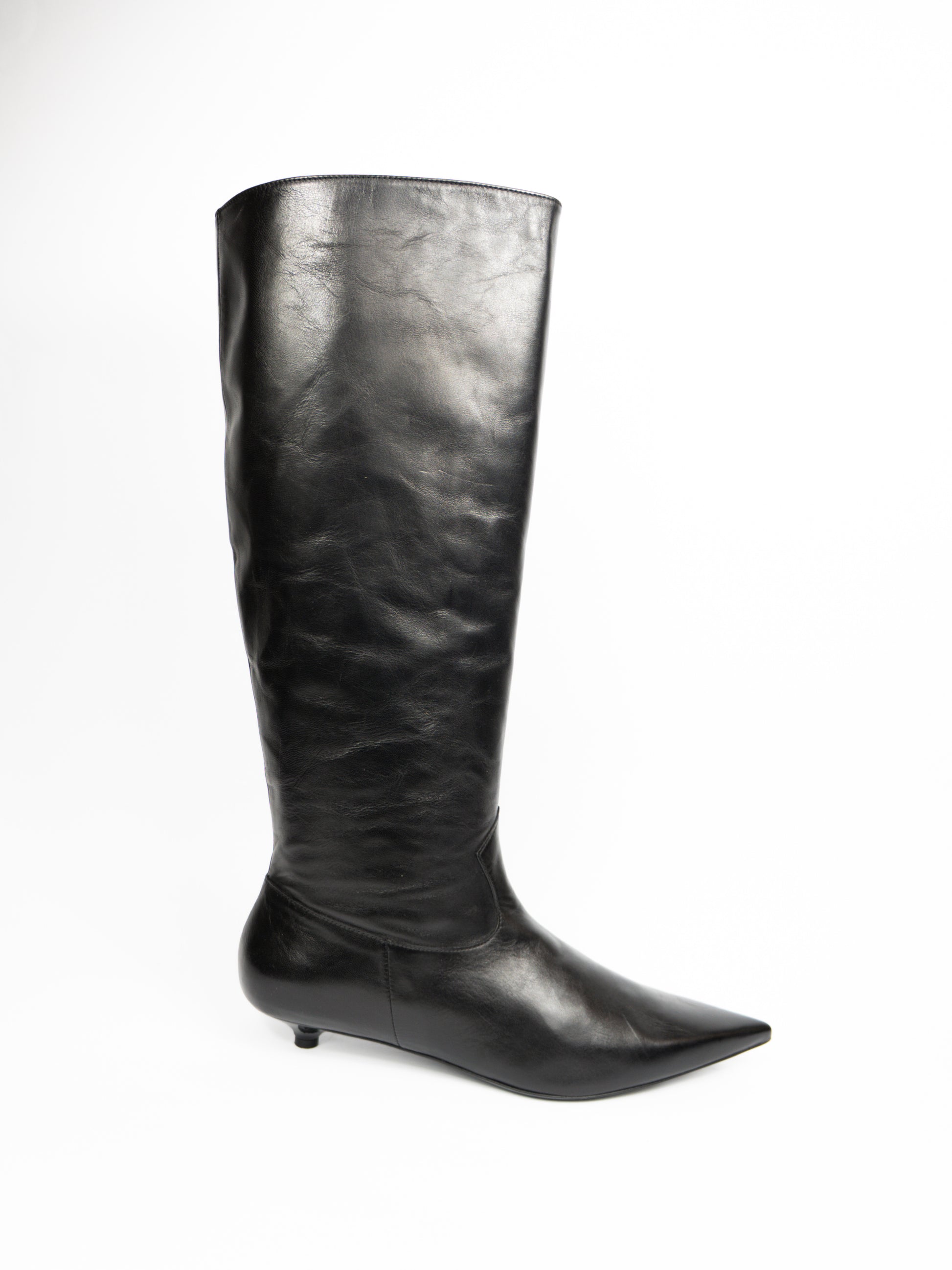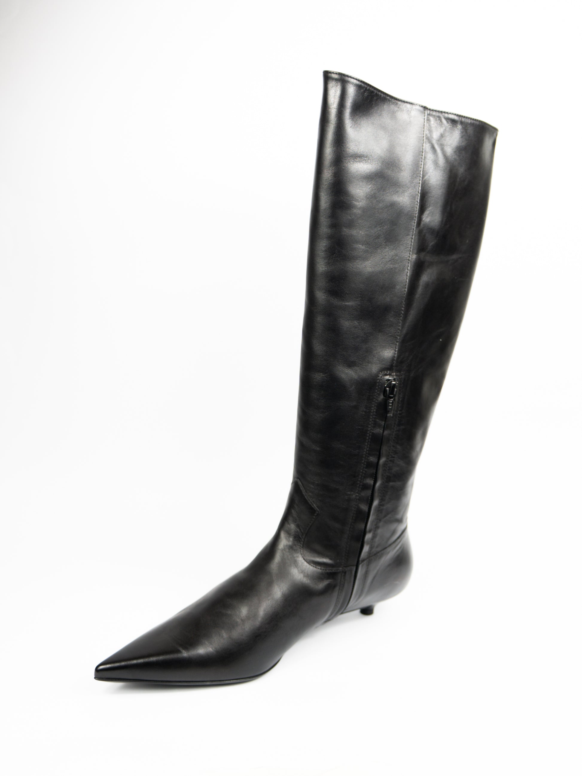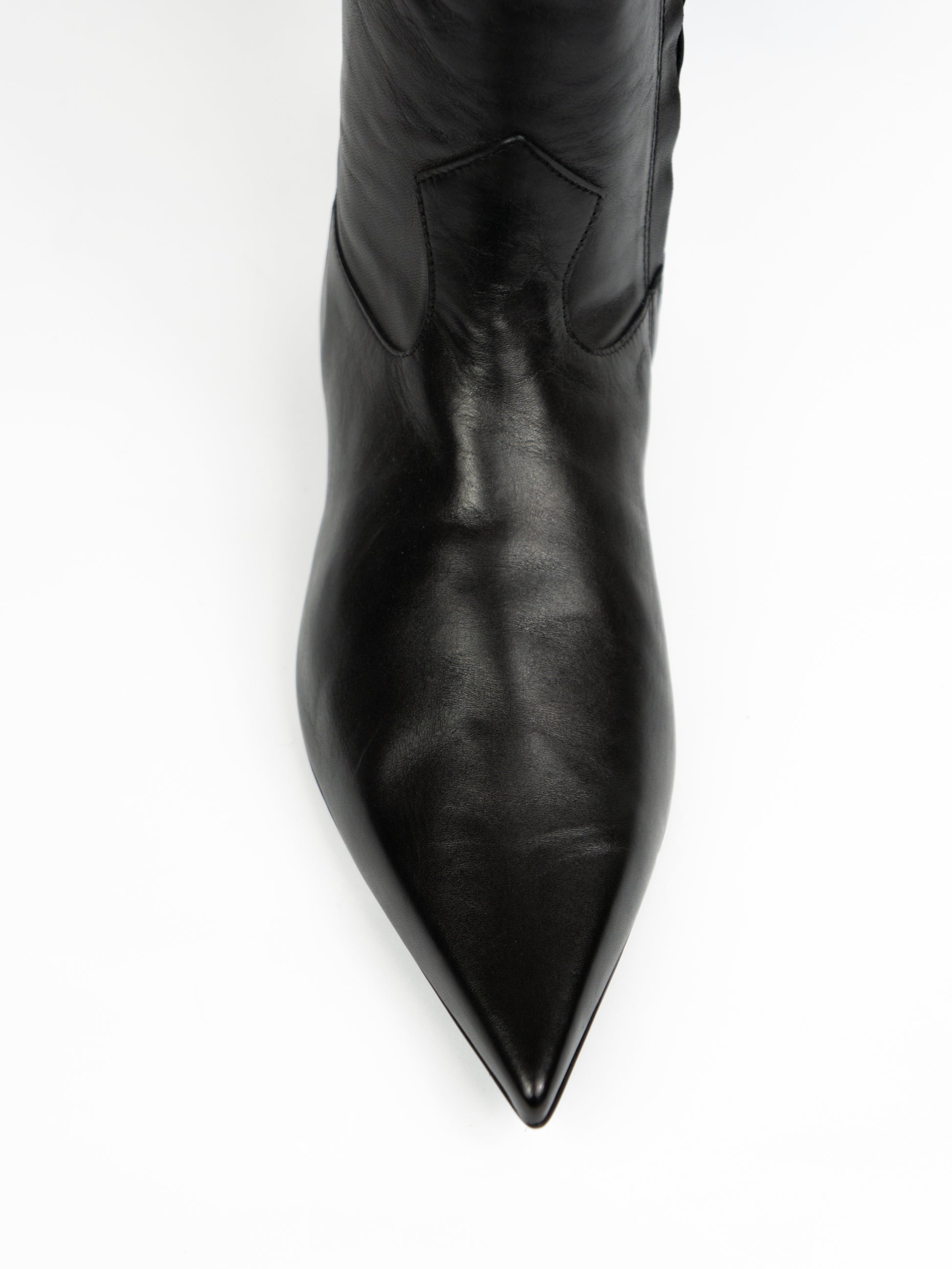 Melni ādas zābaki ar rāvēju iekšpusē.