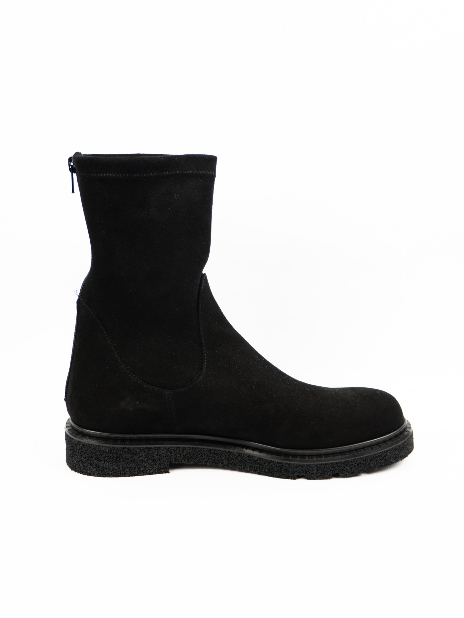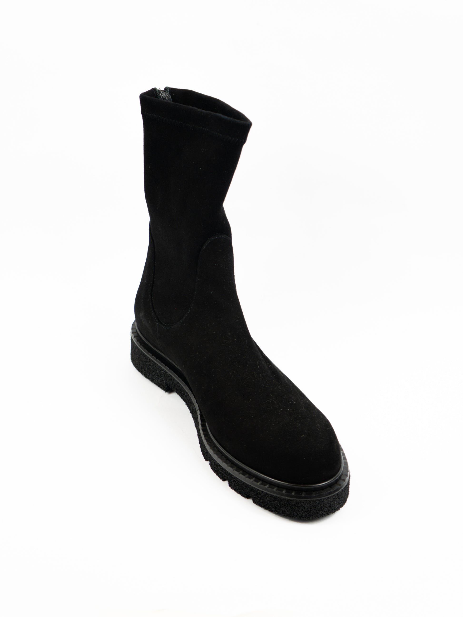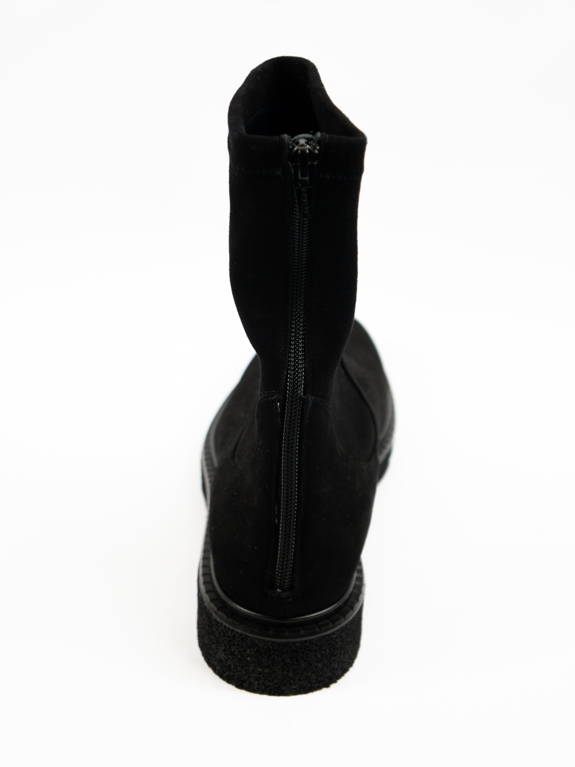 Melni zamšādas zābaki ar rāvēju aizmugurē.