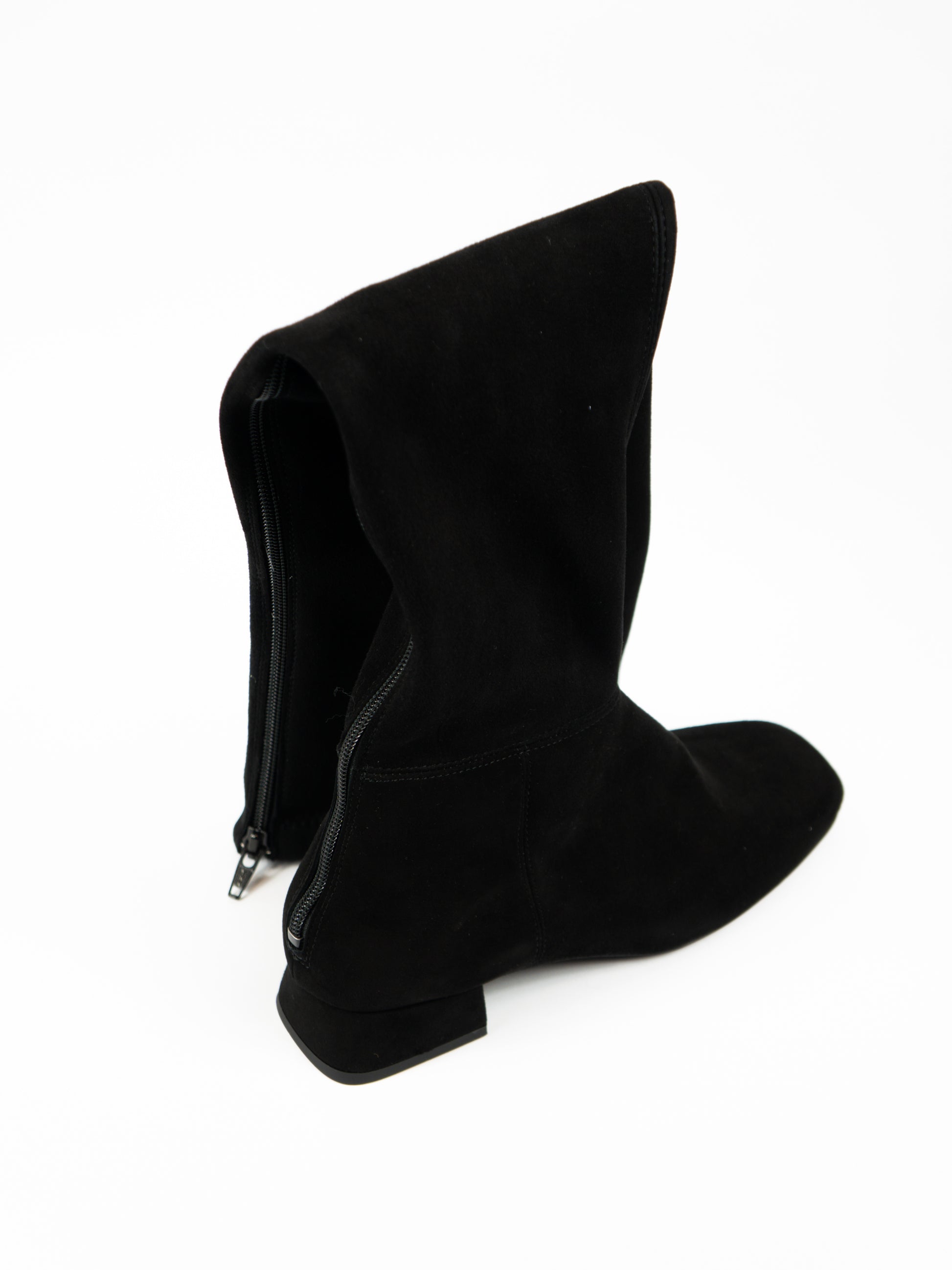 Zamšādas zābaki ar rāvēju aizmugurē. Pāri celim.
