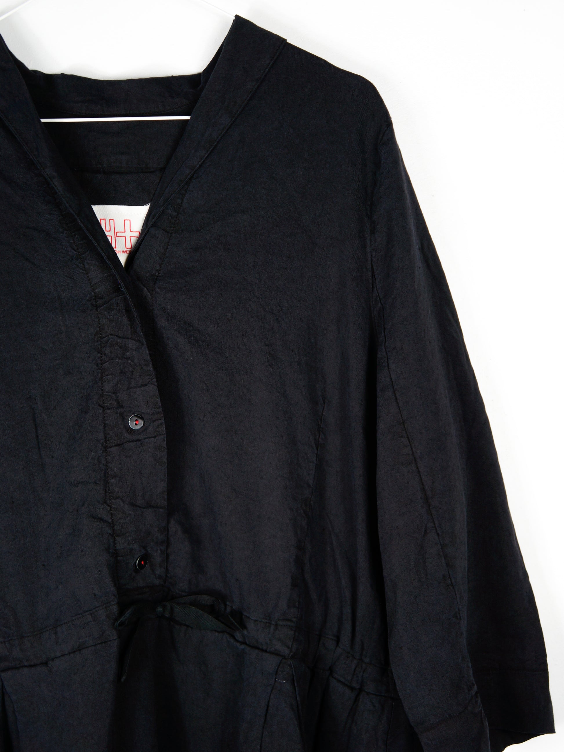 Gara kleita ar savelkamu vidukli. Sānā kabatas. 55% lins, 45% zīds; 100% kokvilna.