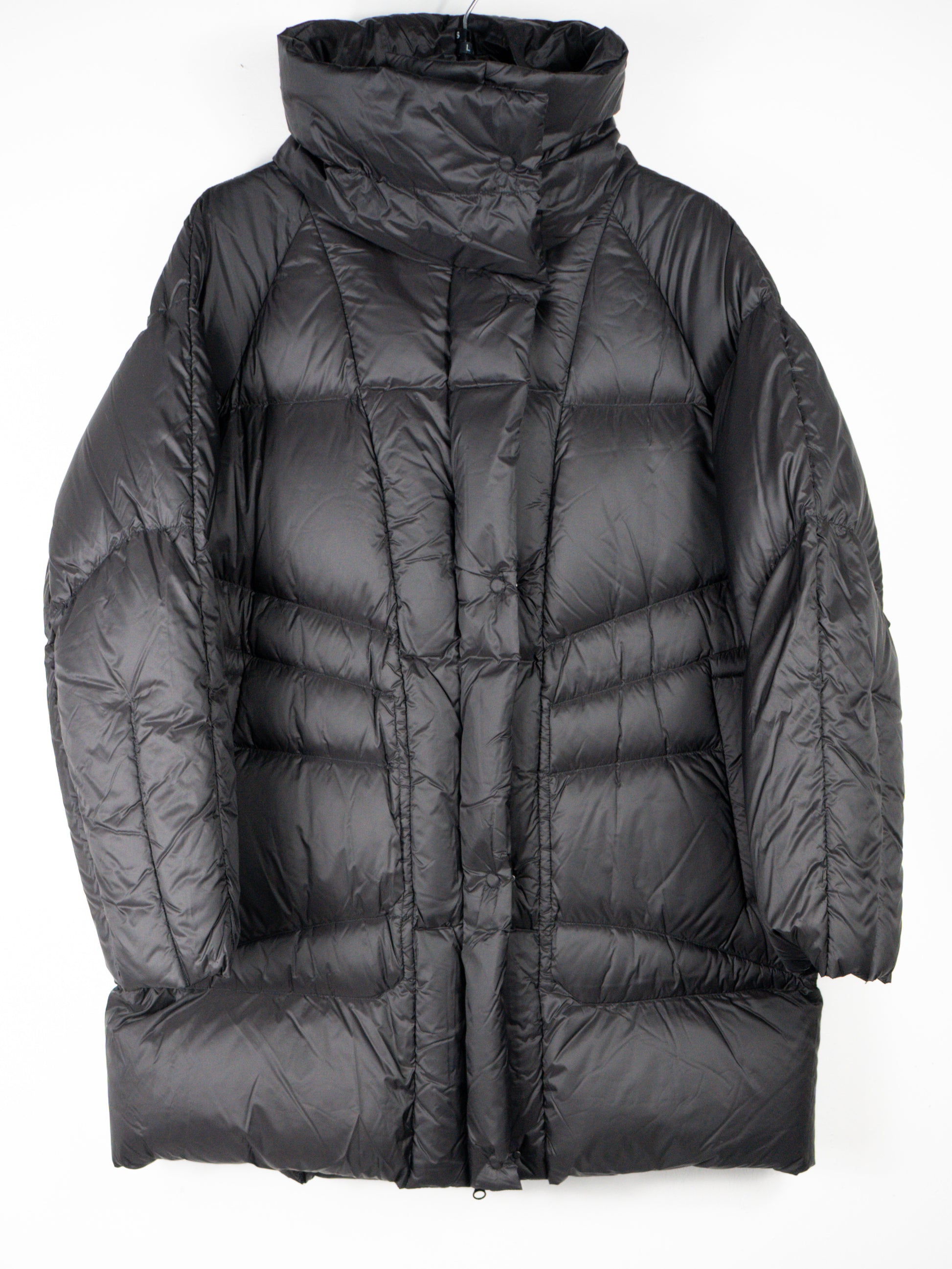 Dūnu jaka ar rāvēju un spiedpogām. Paaugstināta apkakle. 100% poliamīds; 90% dūnas, 10% spalvas.