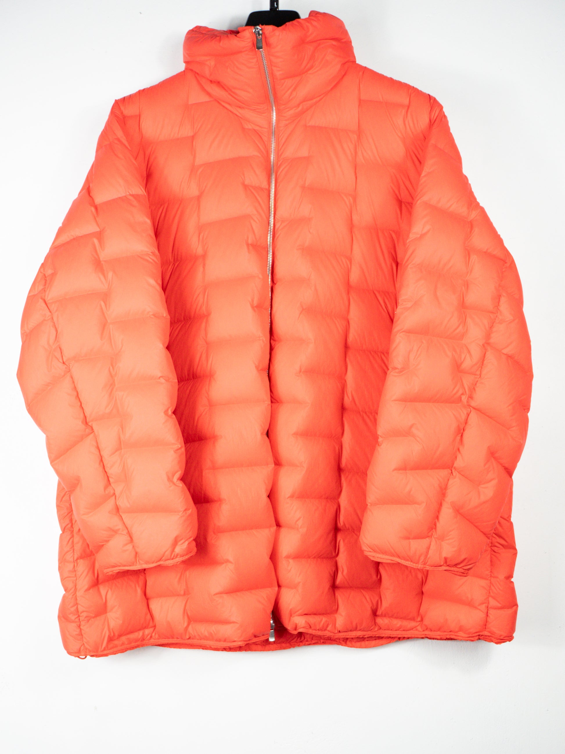 Spilgti oranža, viegla dūnu jaka. 100% poliamīds; 90% dūnas, 10% spalvas.