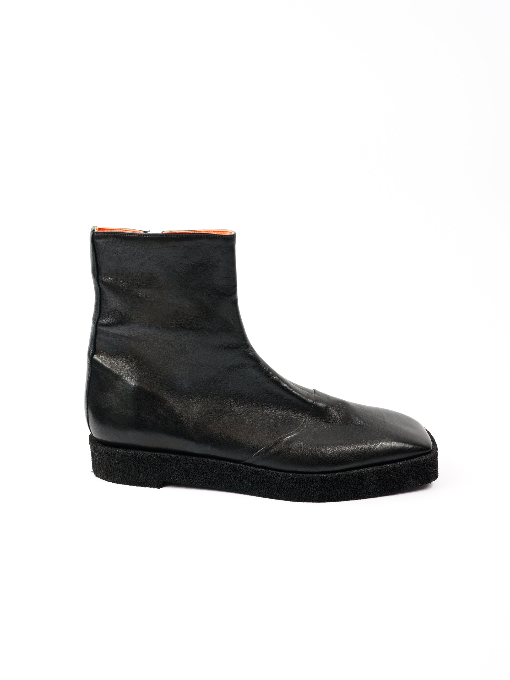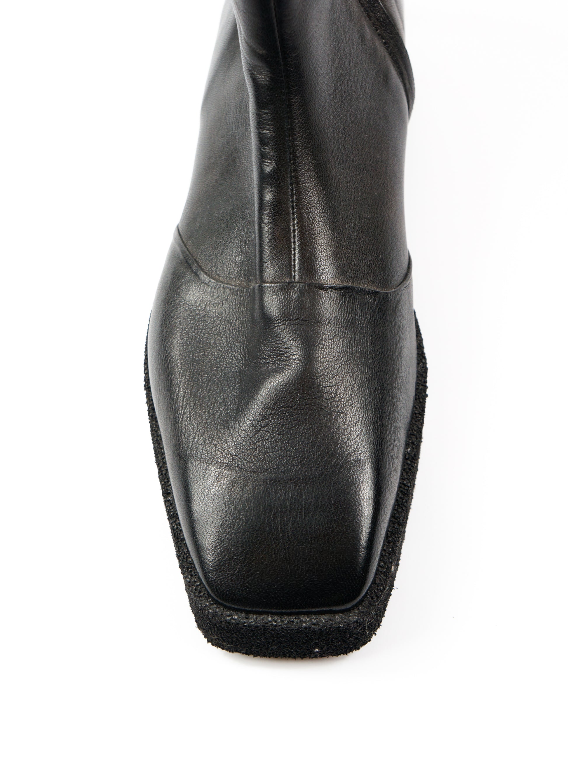 Melni ādas zābaki ar porainu zoli.