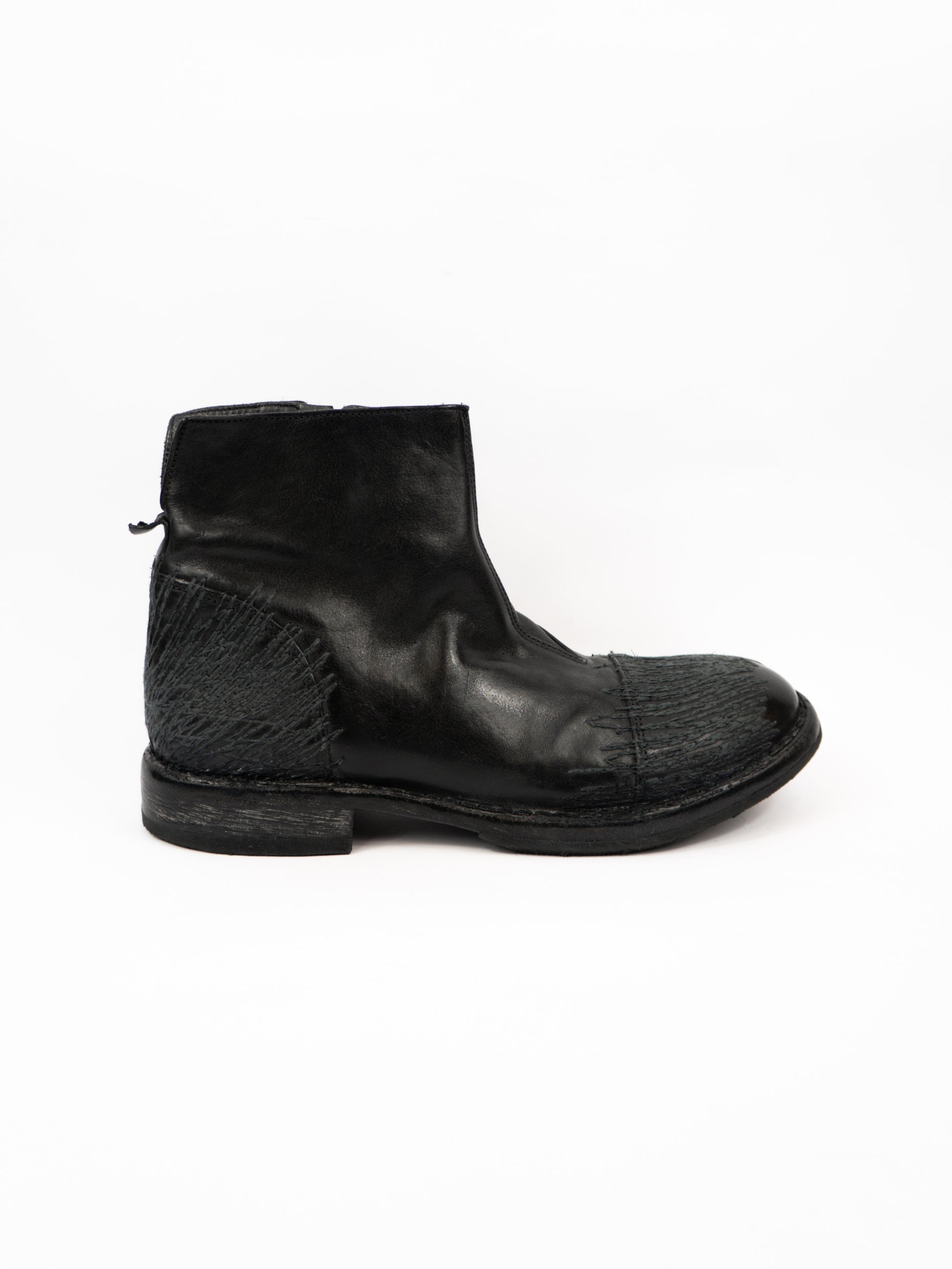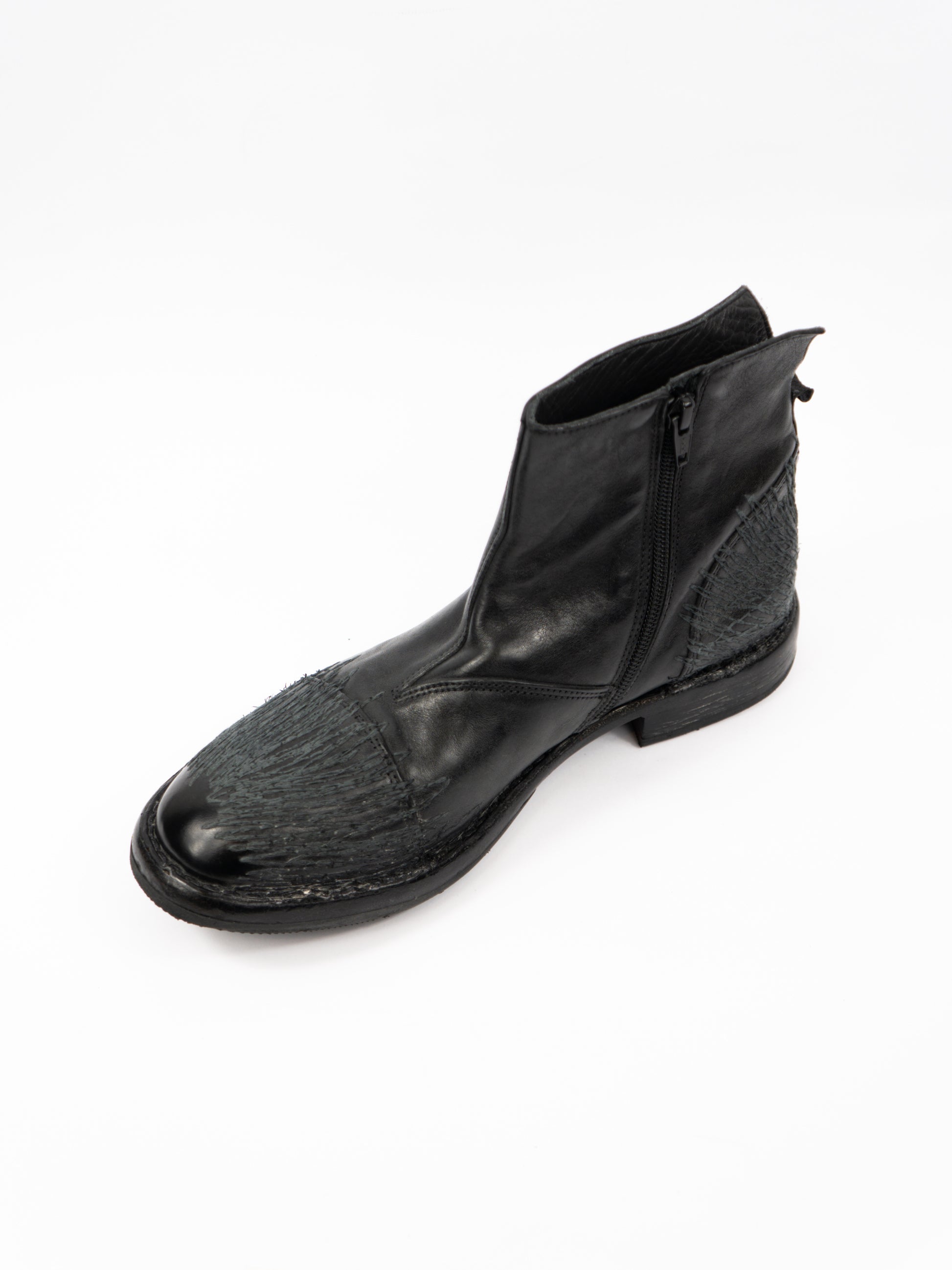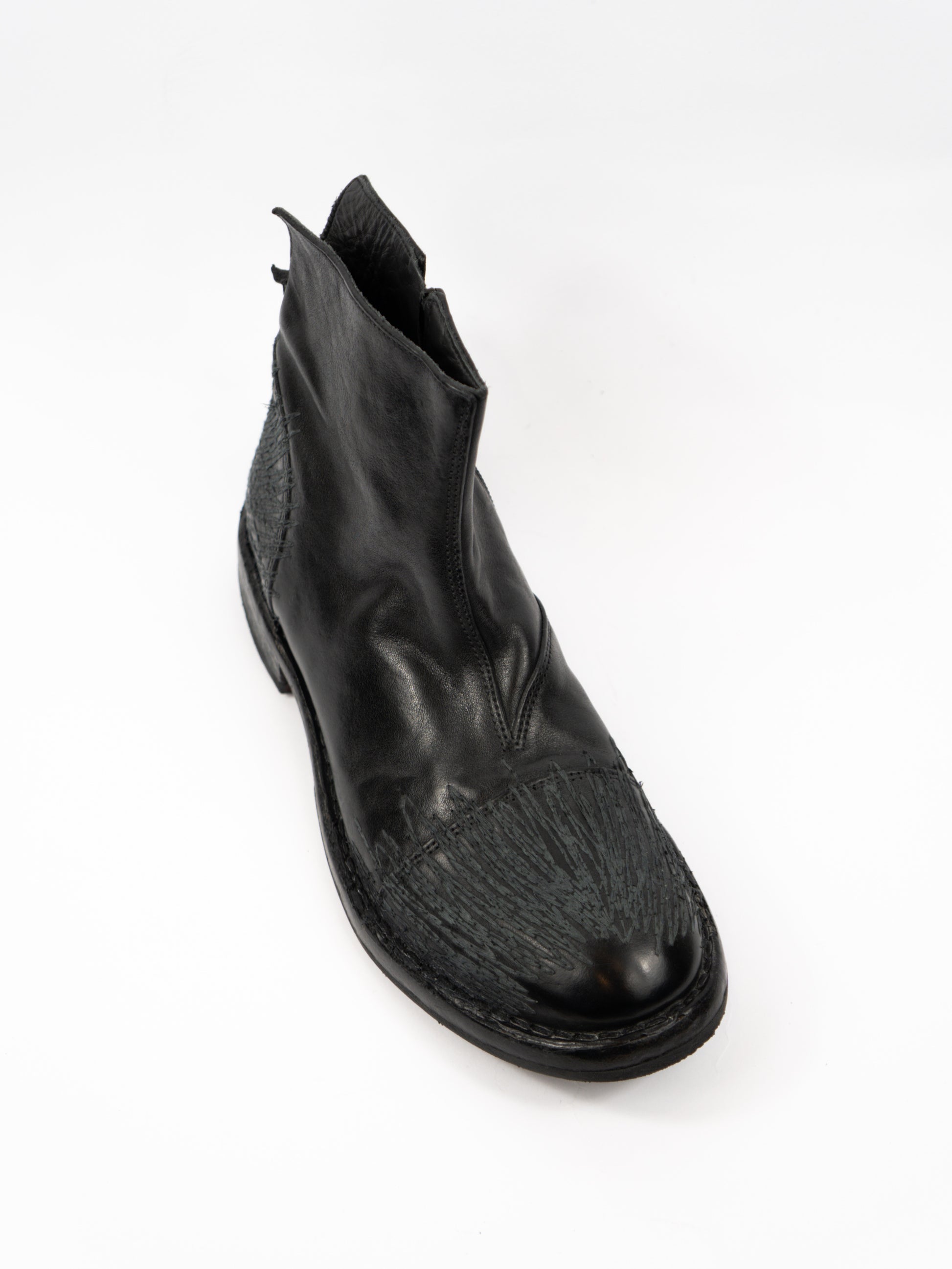 Melni ādas zābaki ar izšuvumiem. Sānā rāvējs.