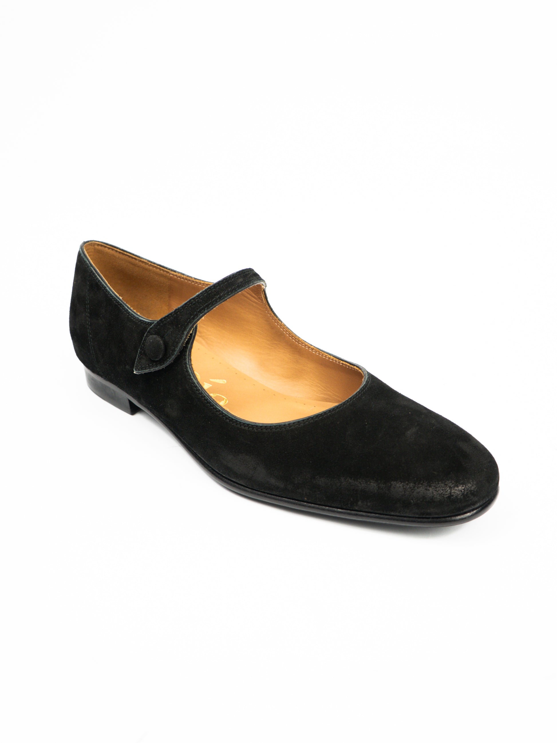 Melnas zamšādas kurpes.