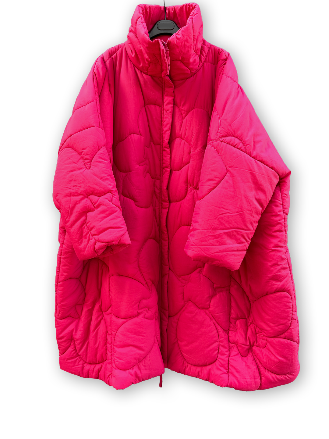 Rozā mētelis ar pildījumu. Ziedu raksts. 100% poliamīds.