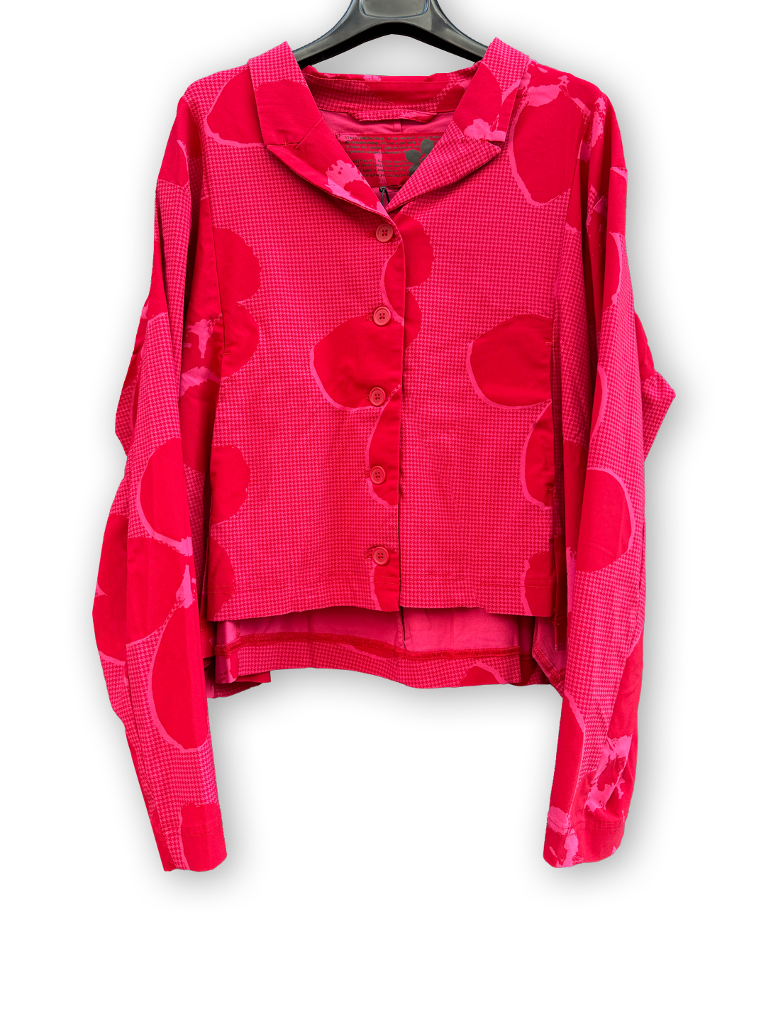 Elastīga žakete ar ziedu rakstu. Sānā kabatas. 70% viskoze, 23% poliamīds, 7% elastāns.