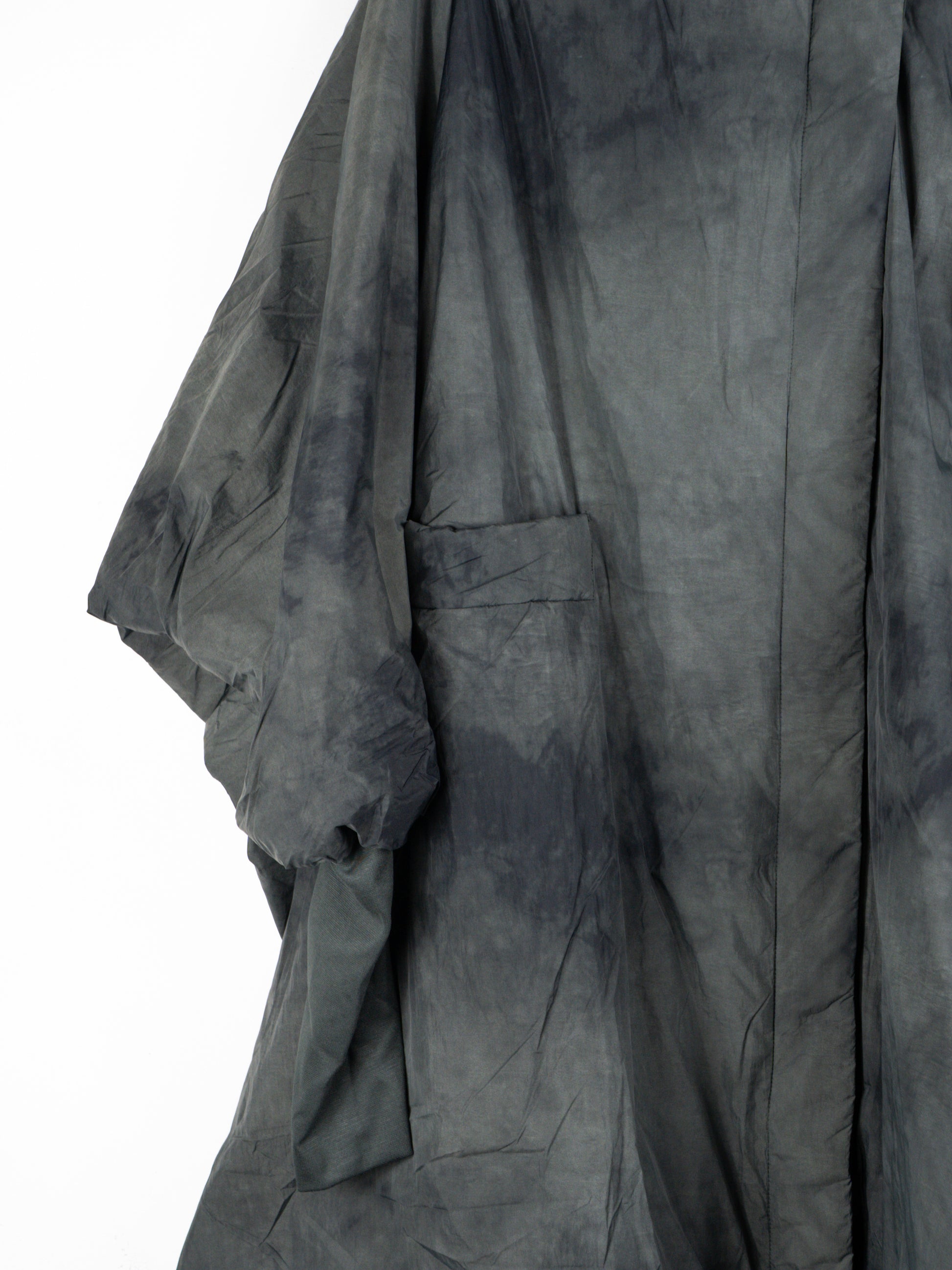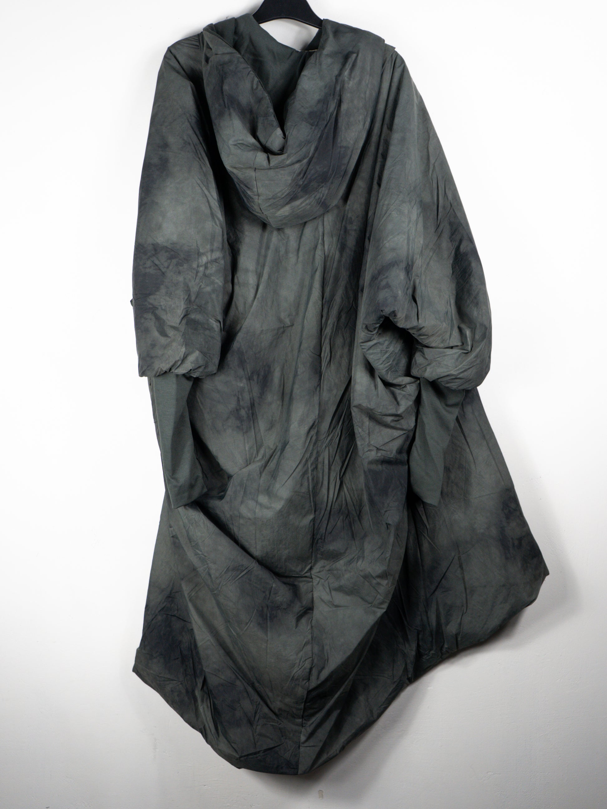 Zaļš mētelis ar pildījumu, pogām un kapuci. Sānā asimetriskas kabatas. 100% poliesters.